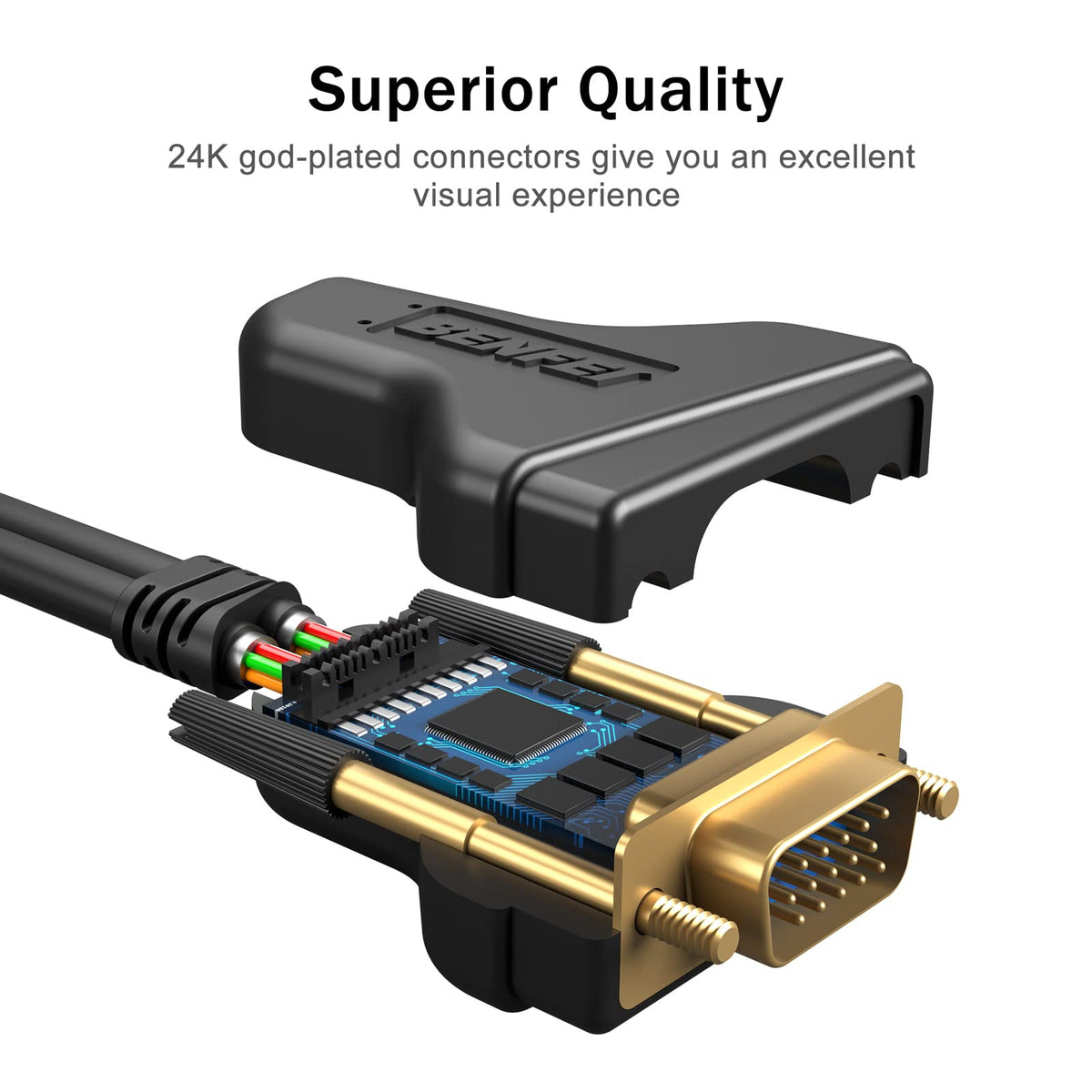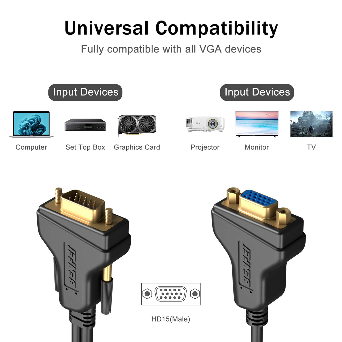 Video Transmit This Cable Is Used To Connect Two Vga Monitor Or Project At The Same Moment. It Could Mirror Or Extend The Video From Laptop, Graphic Card To The Monitor Or Projector. Extend Or Mirror Mode Vga Splitter Cable Could Mirror Or Extend Your Laptop Or Pc Or Graphics Card To Two External Display. Under Mirror Mode, Laptop And Display Show Same Screen, Easy To Share Information In Office Or Meeting; Under Extend Mode, Laptop And Display Show Diffenrent Screen, Convenient To Extend A Workstation. Ideal For Video Streaming, Gaming, Working; Please Pay Attention, The Video On The Two Monitor Are Identical. Their Content Could Not Be Different. Specification Core Wire: Tinned Copper Connector: Gold Plated Cord Wire Gauge: 30Awg Case: Pvc Resolution: 1080P Supported Modes: Extend And Mirror Modes, Two Identical Content On The Two External Monitor Double Shielding: Aluminum Foil And Braid Ferrites 2 Ferrites Distributed In Each End Package Benfei Vga Y Splitter Cable X 1 Warranty Lifetime Warranty And Easy-To-Reach Customer Service Support.