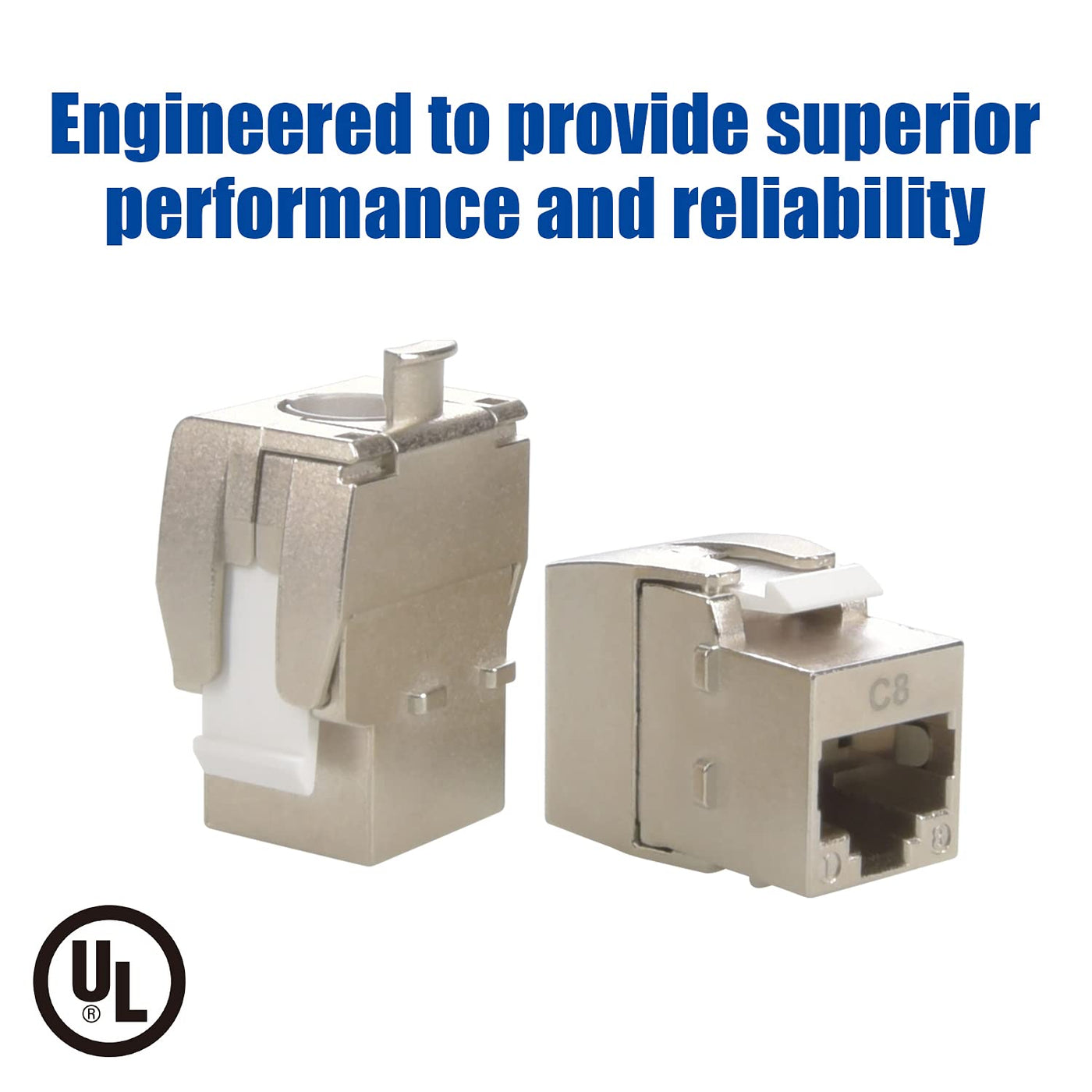 Beszin'S Cat.8 Rj45 Tool Less Shielded Keystone Jacks Are Designed To Work Specifically With Cat.8 Solid Wire. These Jacks Feature Gold Plated Contacts. The Wire Alignment Insert Provides An Efficient Termination Without Any Need Of Tools (We Recommend To Use A Cable-Cutter To Trim Off Excess Wire). The Housing Is Fully Shielded To Avoid Corrosion And To Protect From Emi (Electromagnetic Interference).Features:&Bull; Tool Less Termination (No Crimping/Termination Tool Needed)&Bull; Gold Plated Contacts&Bull; Compatible With 22Awg-24Awg Wire&Bull; Compatible With Solid Wire&Bull; Supports 40Gbps&Bull; Ul / Rohs Compliant