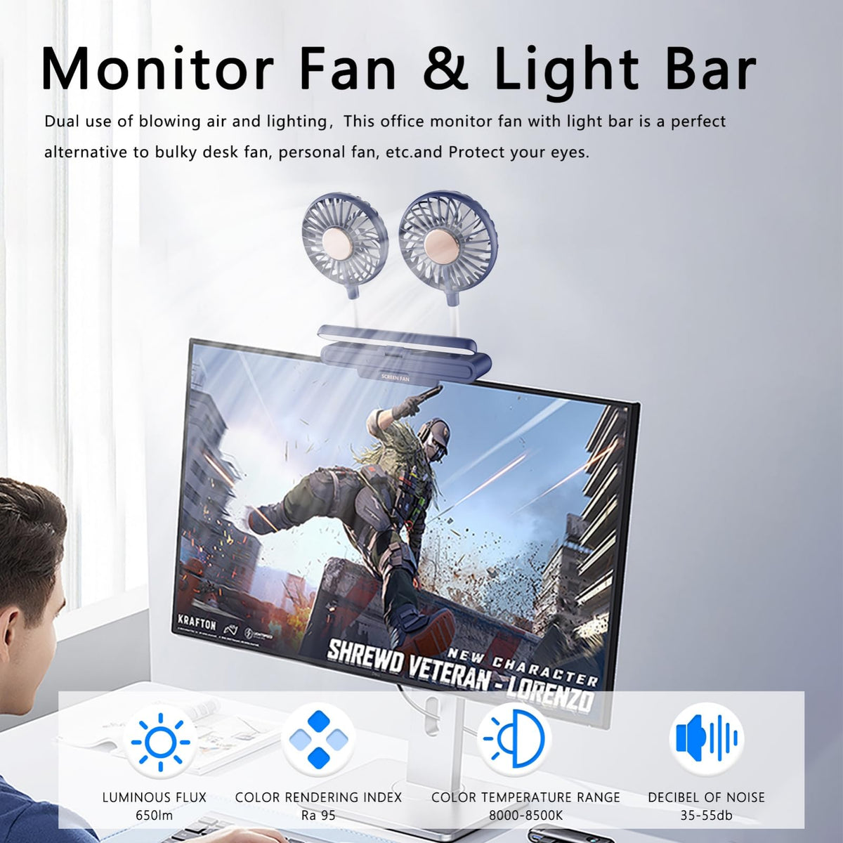 Binguowang Monitor Fan Double Head With Clamp & Light Bar, Desk Lamp With Fan For Home Office Portable Laptops Fan Pc Fan Tablet
