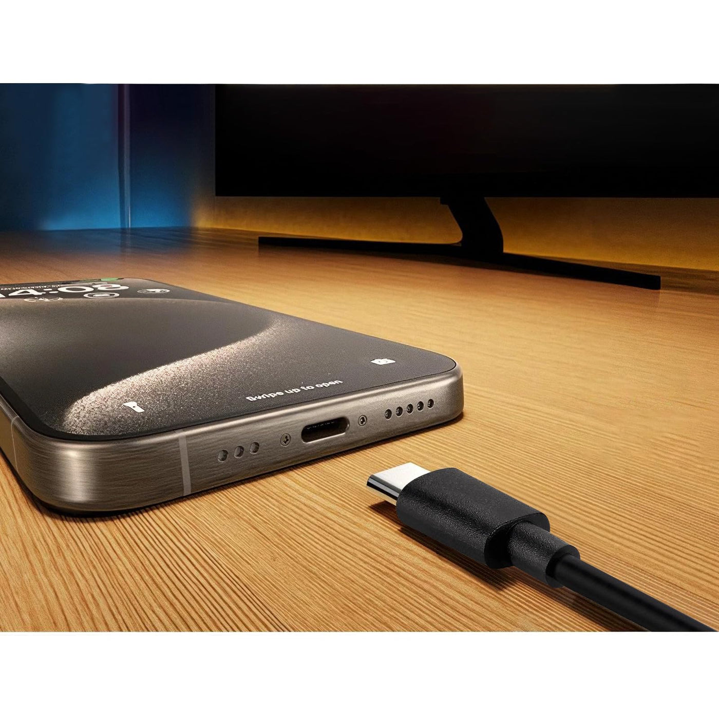 Usb C To Usb C Cable That Works With Iphone 15/16 (Pro, Pro Max, Plus) And Compatible With Samsung Galaxy, Compatible With Motorola Moto, It'S A Fast Charging Cable That Is 3 Feet Long And Made Of Tpe Material. The Cable Is Black In Color.