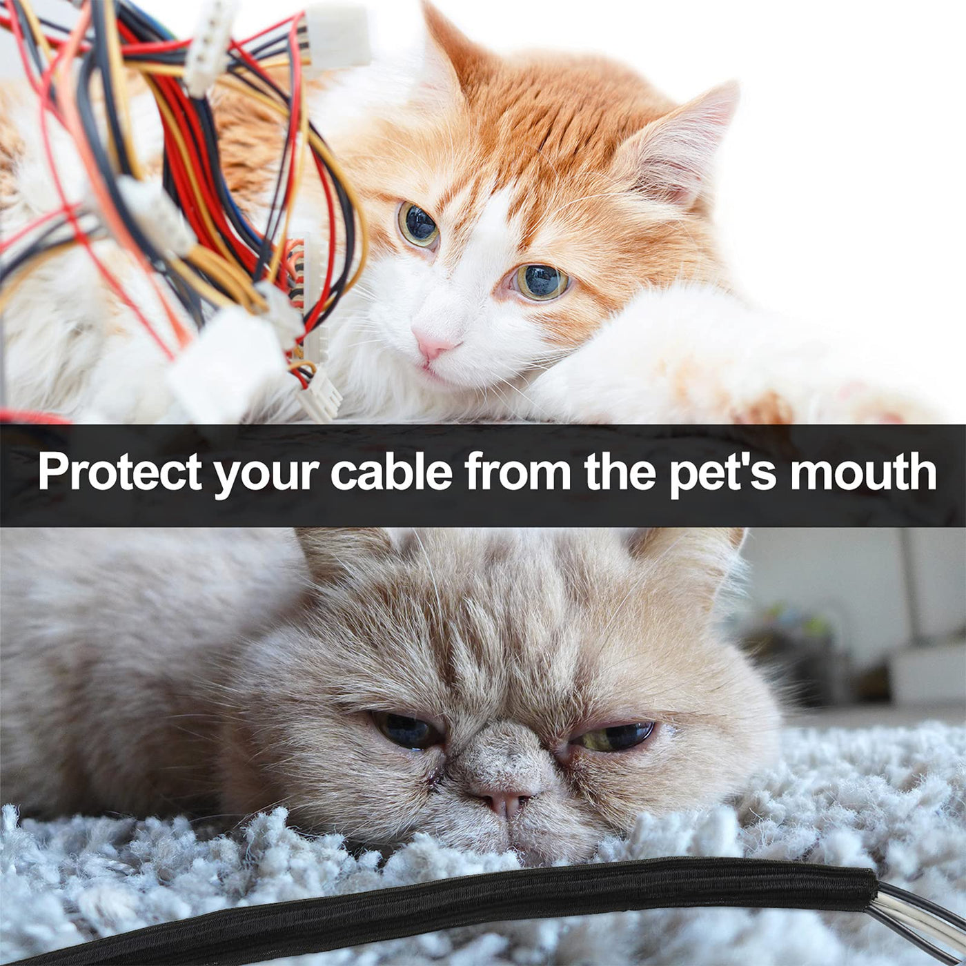 Q: Is the material of the cable sleeve safe for pets?A: Yes, the cable sleeve is made from heat-resistant woven polymer material that is also abrasion and flame resistant. This makes it a suitable solution for protecting electrical wires from pets that may chew on them.