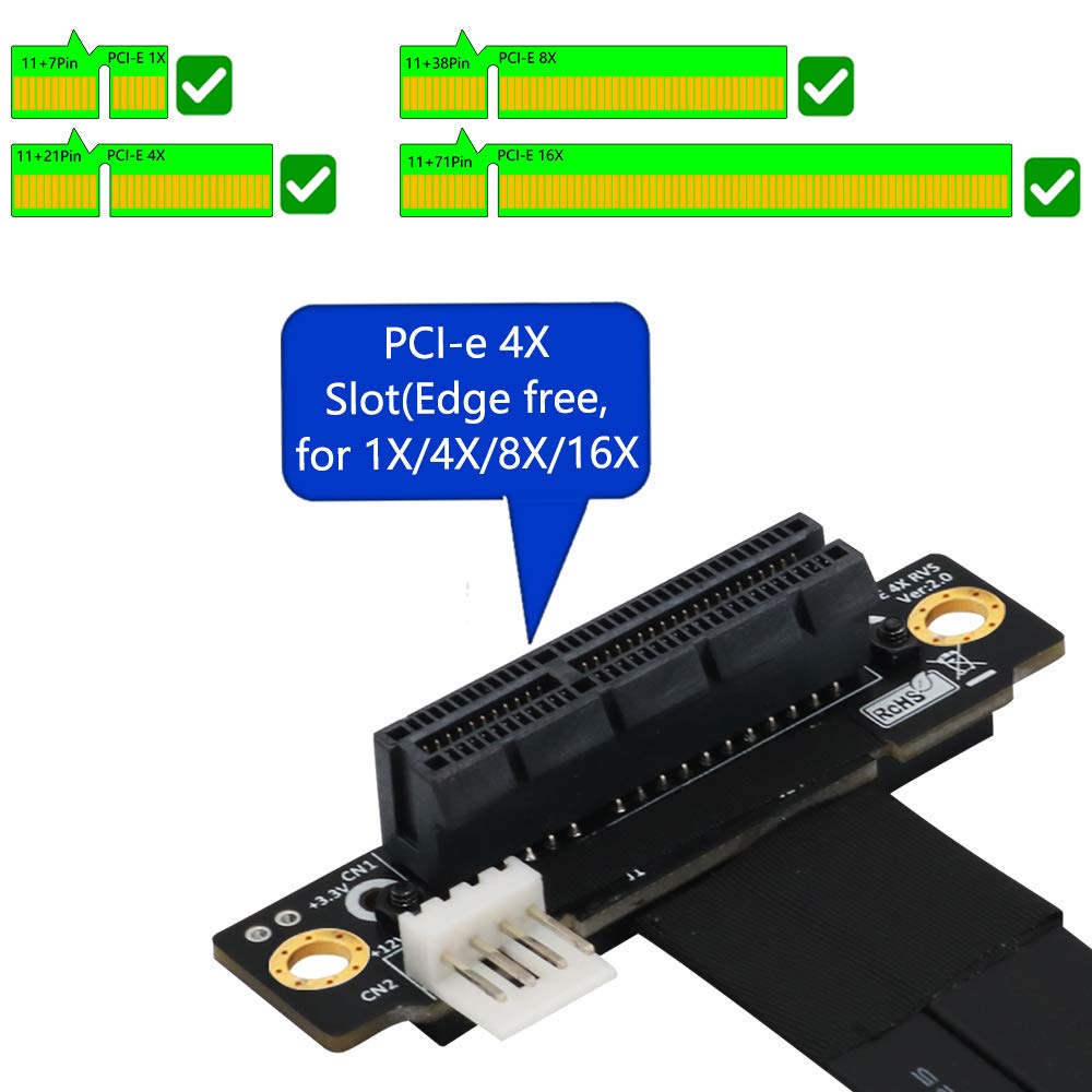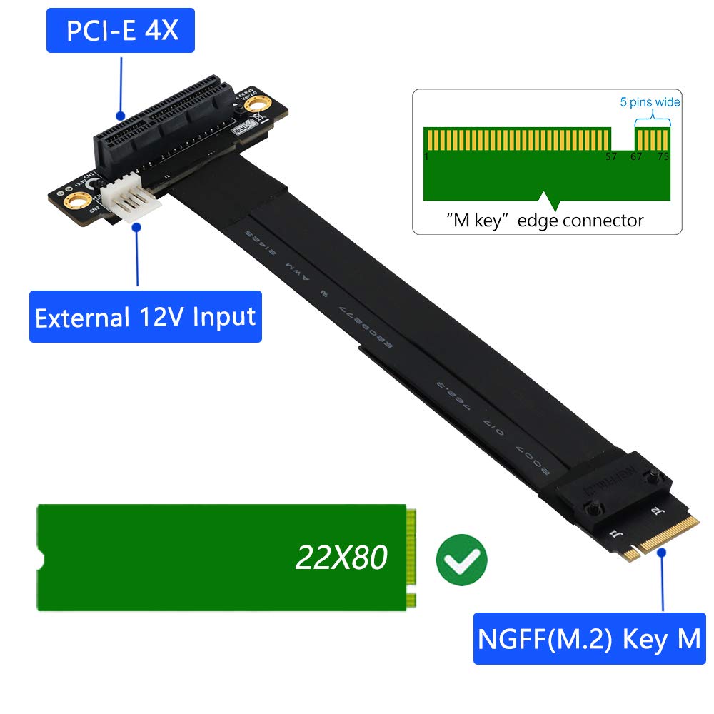 M.2 Ngff Key M To Pcie 3.0 4X Extension Cable (90Right Angle Pci-E Slot) Product Features: 1.Wire Advantage, Using German Patented Imported Wire, Using Taiwan Imported High Quality Connector, High Frequency Support Pcie 3.0 Stable Transfer. 2.Supports 2230/2242/2260/2280 Type M.2 Interface. 3. Pci-E 4X Slot Edge Is Free, So Supports Pci-E 1X/4X/8X/16X Card 4.Supports Windows10/8/7/2000,Ios Or Linux 5.Cable Length: 20Cm 6.System Requirement: M.2 Key M Slot On Mainboard Package Contents: 1X Ngff To Pcie X4 Extension Cable 2X M2 Screw 1X Screw Driver 1X 4P To Sata Cable
