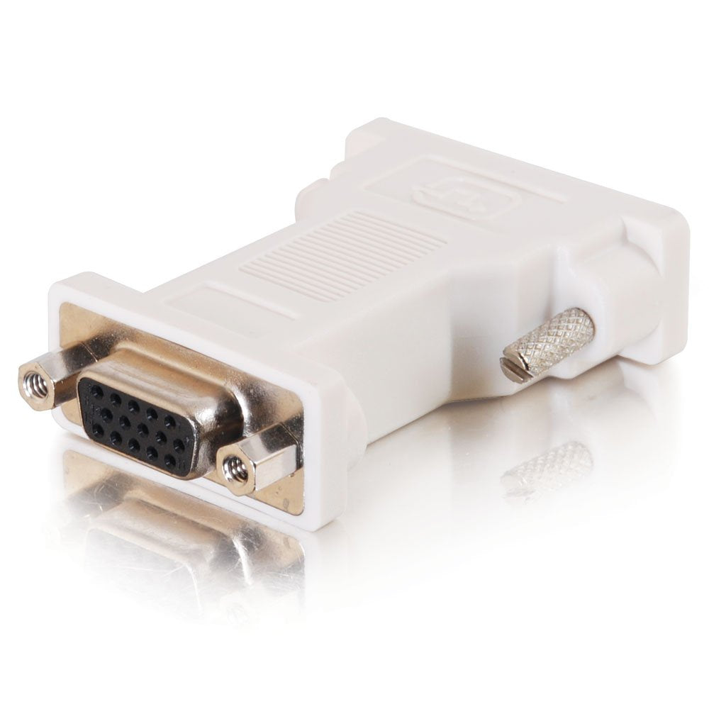 Q: What type of devices is the C2G DVI Male to VGA Female Video Adapter compatible with?A: The C2G DVI Male to VGA Female Video Adapter is compatible with devices that have an analog DVI-I port, including PCs, flat panel displays, CRT displays, projectors, and HDTVs.