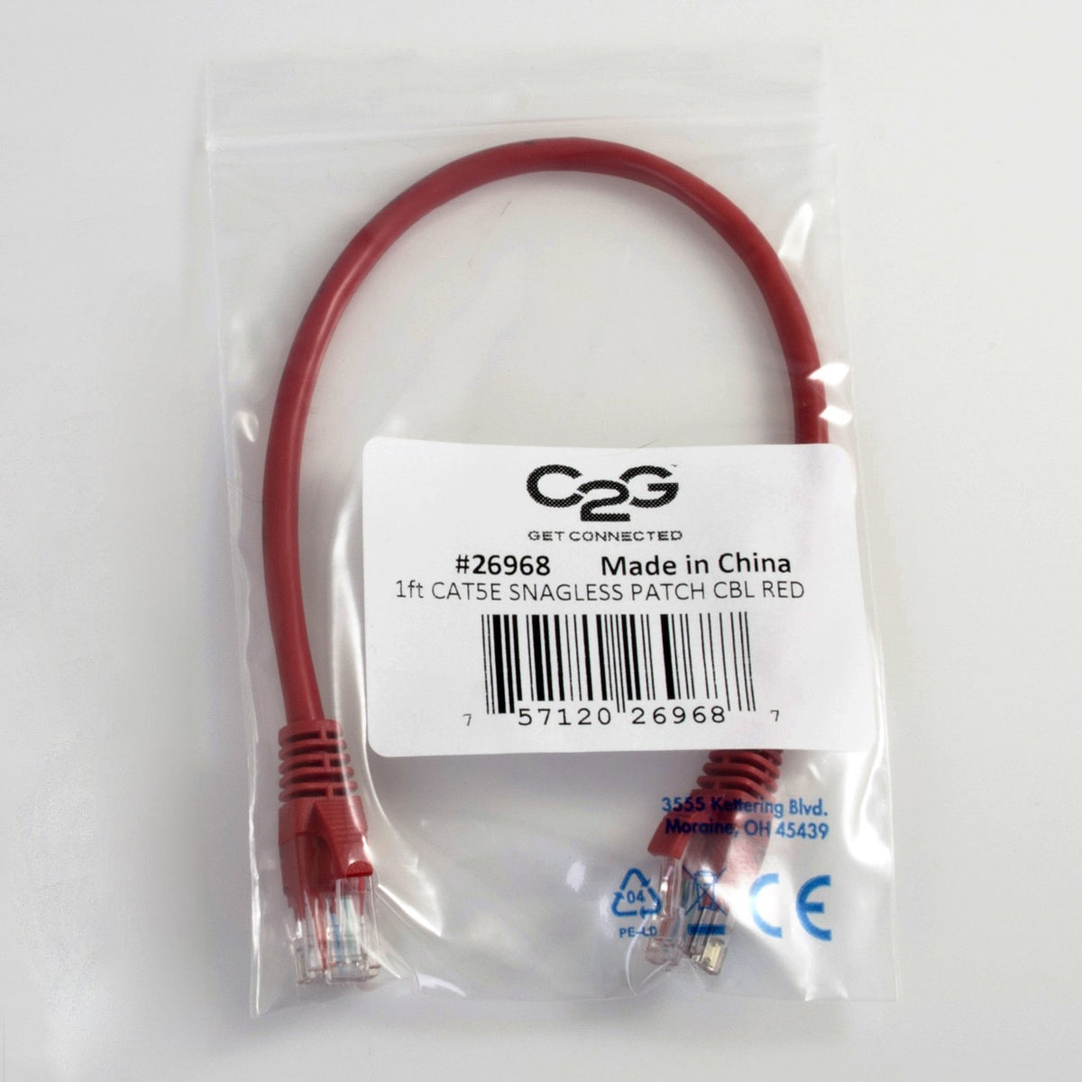C2G/Cables To Go 15190 Cat5E Snagless Unshielded (Utp) Network Patch Cable, Red (5 Feet/1.52 Meters)
