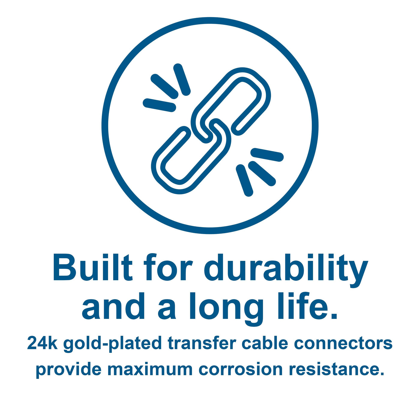 Q: What materials are used in the construction of this USB cable?A: The C2G USB Cable features durable copper wiring for optimal data transfer and 24k gold-plated connectors that provide maximum corrosion resistance and help meet FCC requirements for EMI/RFI interference.