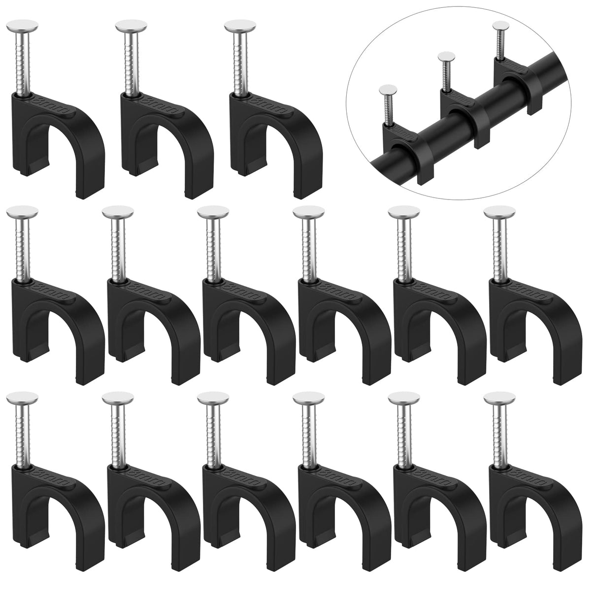 Cable Clips Black Aopockan Tech 100 Pieces Ethernet Cable Clips With Steel Nails 8Mm Cord Holder For Cat8 Cat7 Cat6 Round Ethernet Cable 0.32 Inch