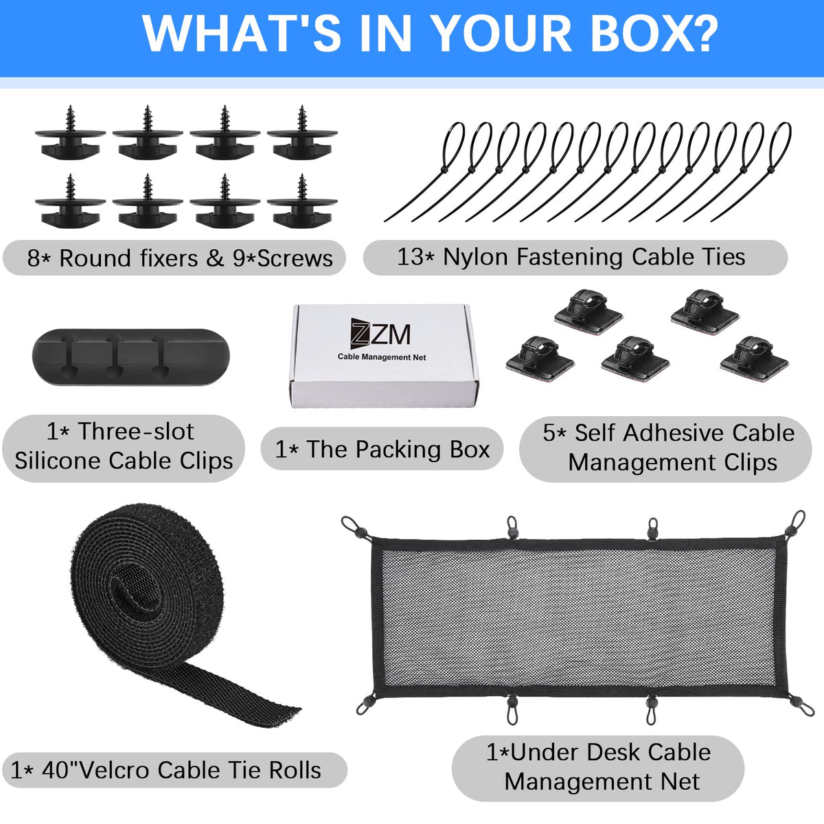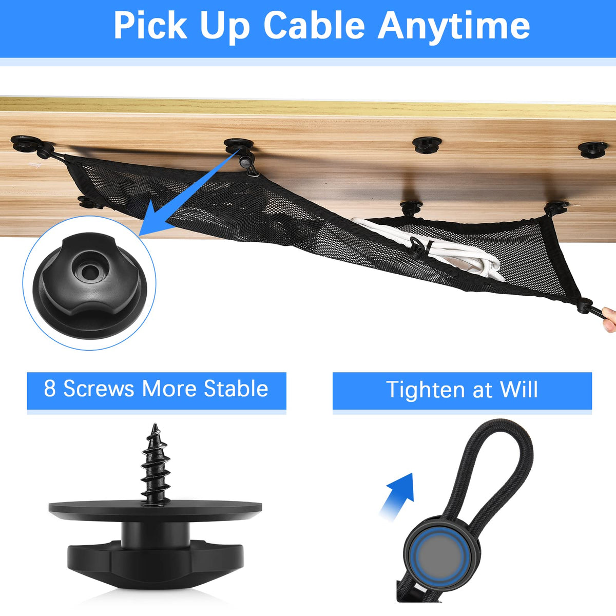 Cable Management Net Under Desk Hide Wires Cables Plugs Charging Cables Increase Office Space To Enhance Work Efficiency For Offices Game Tables Home Offices Adjustable Desks Prevent Babies Animals From Accidentally Touching Wires And Foot On Wires And Other Behaviors Cable Organizing Sets Game Equipment Optimization Space Arrangement Tray Net Clean-Looking Ergonomic Space For Optimal Productivity Setup