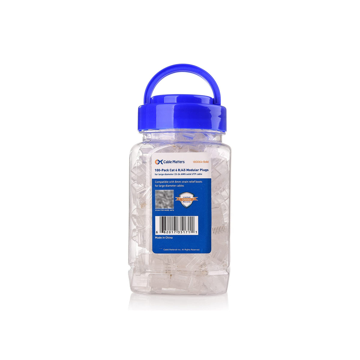 Cable Matters 100 Pack Cat 6 RJ45 Modular Plugs for Large Diameter Cable