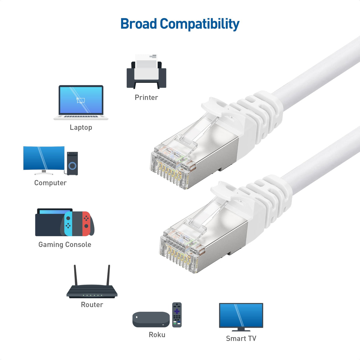 Cable Matters 5-Pack, Cat 6A Shielded Ethernet Patch Cable in White - 7 Feet