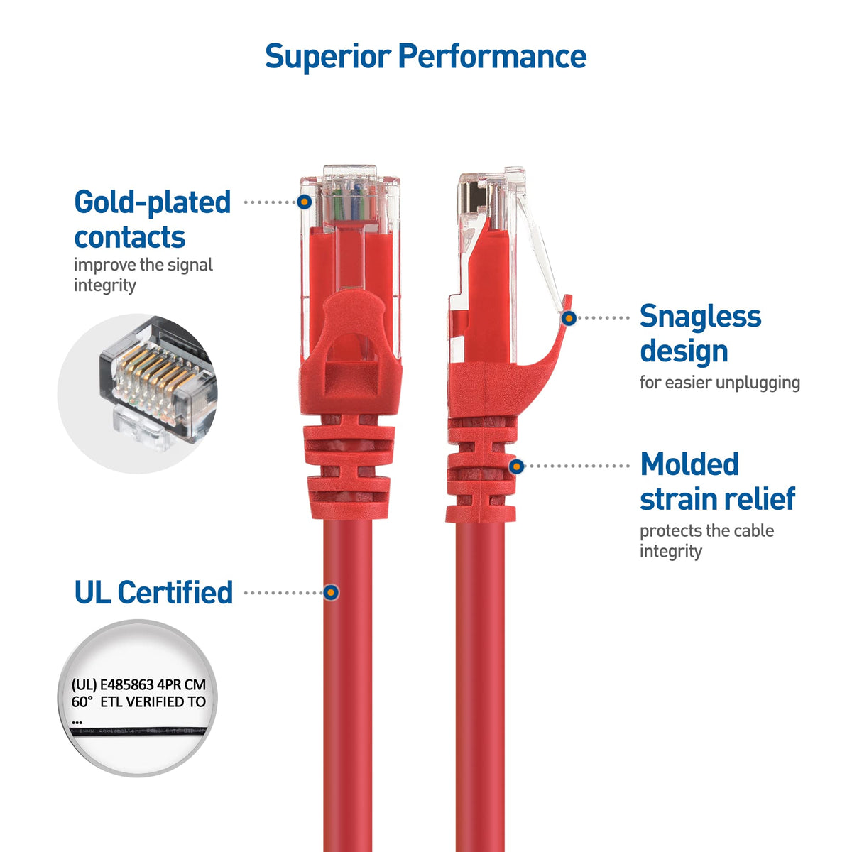 Cable Matters Snagless Cat 6 Ethernet Cable 10 ft (Cat 6 Cable, Cat6 Cable, Internet Cable, Network Cable) in Red