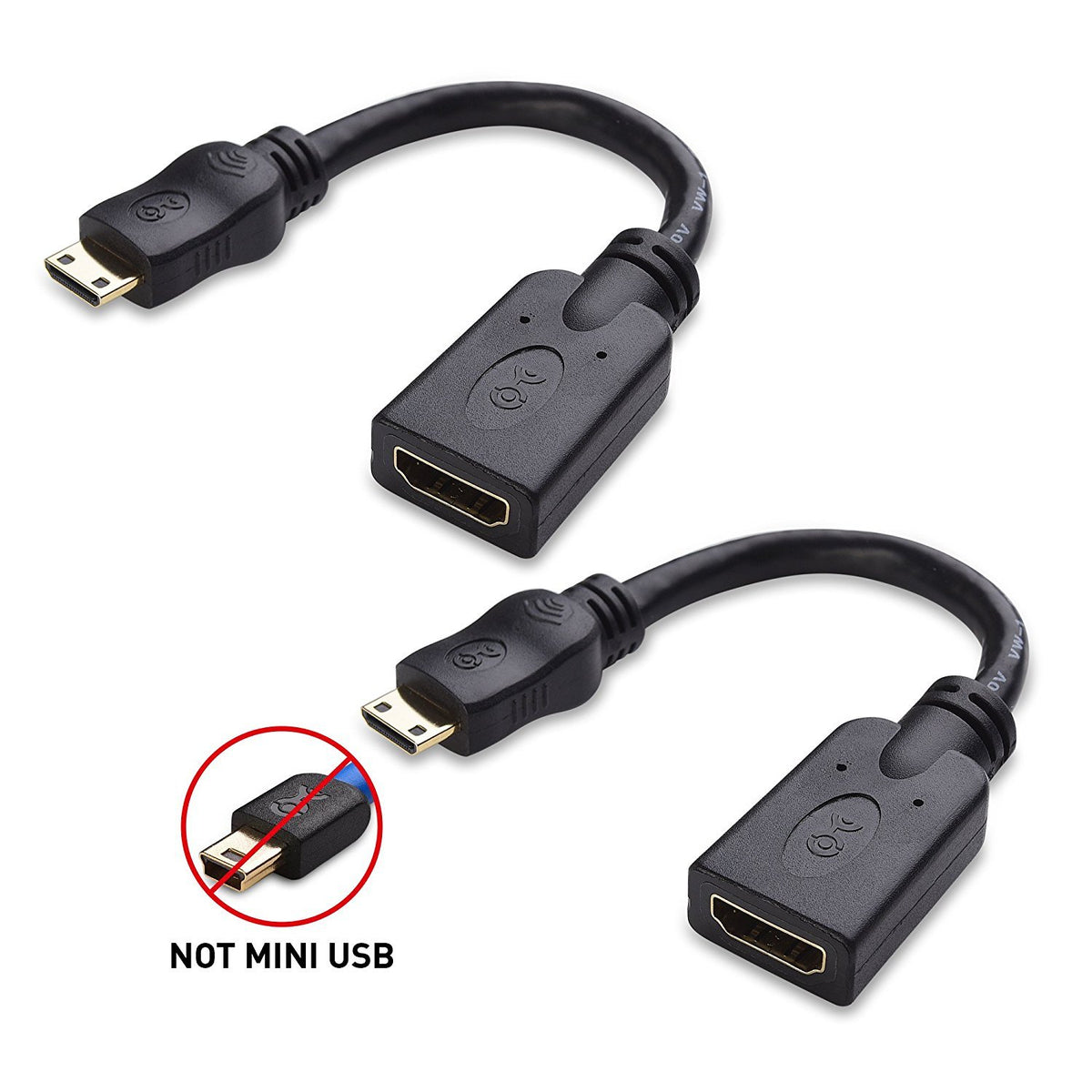 Connect more with Cable Matters HDMI products The Cable Matters Mini-HDMI to HDMI cable adapter is an ideal solution for connecting a tablet, NUC barebones desktop, camcorder, or DSLR to a larger screen display for viewing. Show a presentation on a projector from a tablet or connect a 4K camera to a UHD TV for viewing photos. 4k resolution support with a lifetime warranty> experience the vibrant video and authentic audio supported by this cable adapter. This convenient 2-pack includes a lifetime warranty for peace of mind when purchasing. important notes> - not USB or micro HDMI - Check your device> - HDMI cable (sold separately) is required> - 4K resolution support requires a 4K equipped source and output display> � specifications> - host connector: Mini-HDMI male - Cable connector: HDMI (full-sized) female package contents> 2 x Mini-HDMI to HDMI adapter cable> warranty lifetime warranty and product support