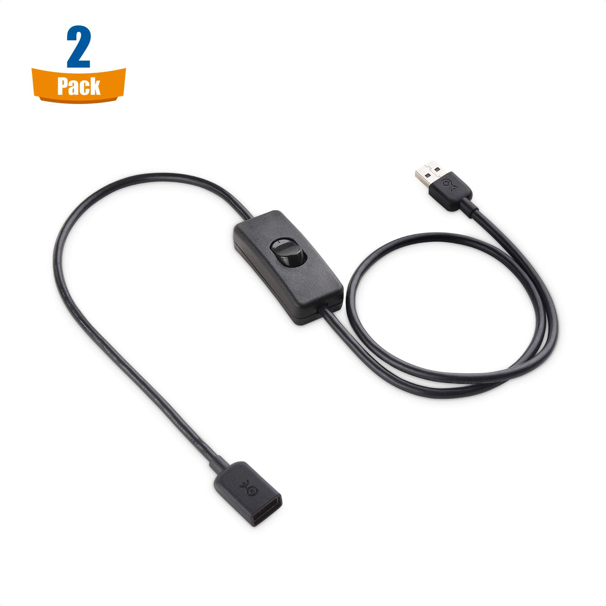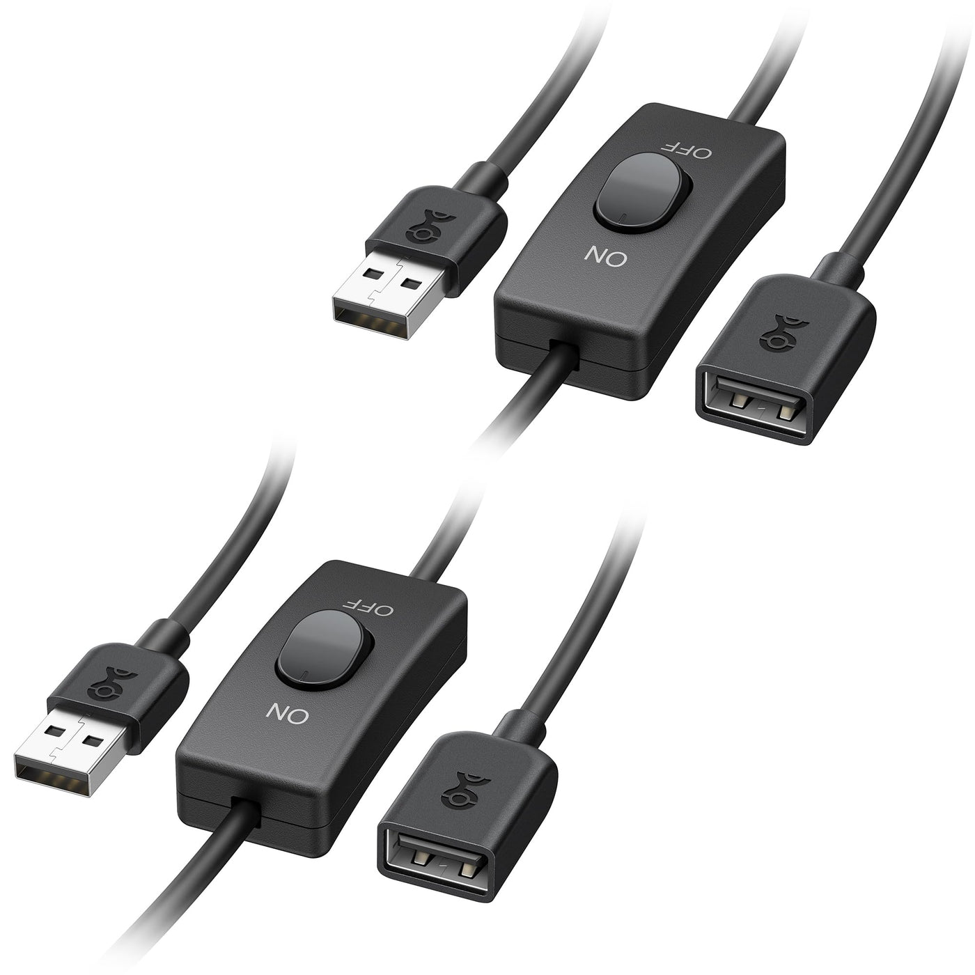 Cable Matters 2 Pack USB On Off Switch 3 ft Support Data and Power, Short USB Extension Cable with On Off Switch (USB Power Switch)