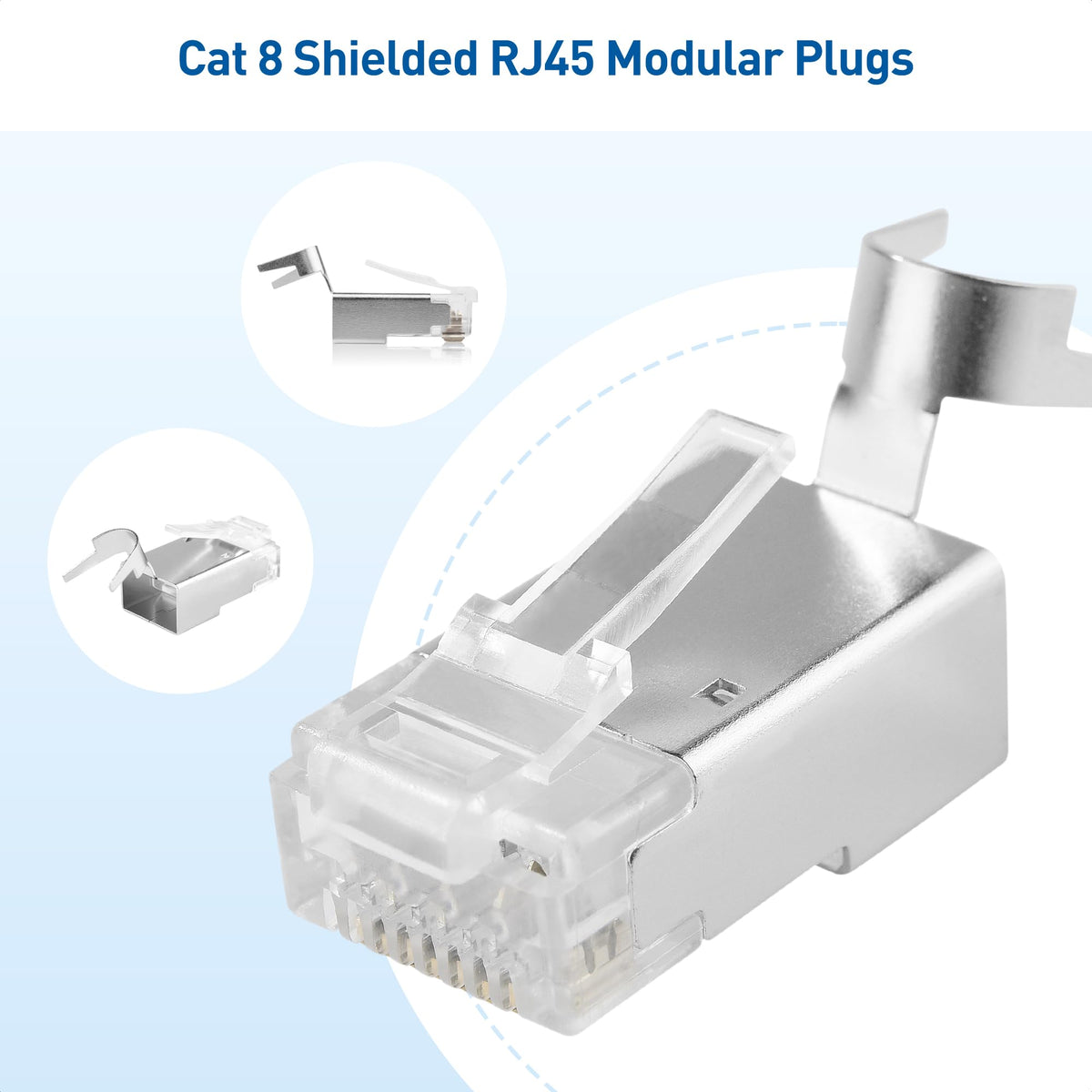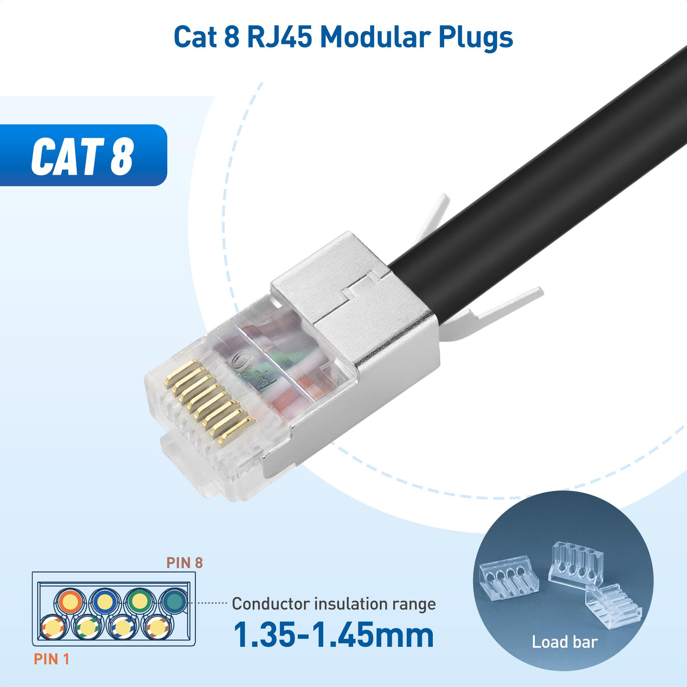 Cable Matters 20 Pack 23 24AWG Shielded Cat8 RJ45 Connectors with Load Bar & Strain Relief Boots, NOT Compatible with 22AWG Cable (Cat 8 Connector / Cat8 RJ45 Connector/Cat 8 Network Connector)