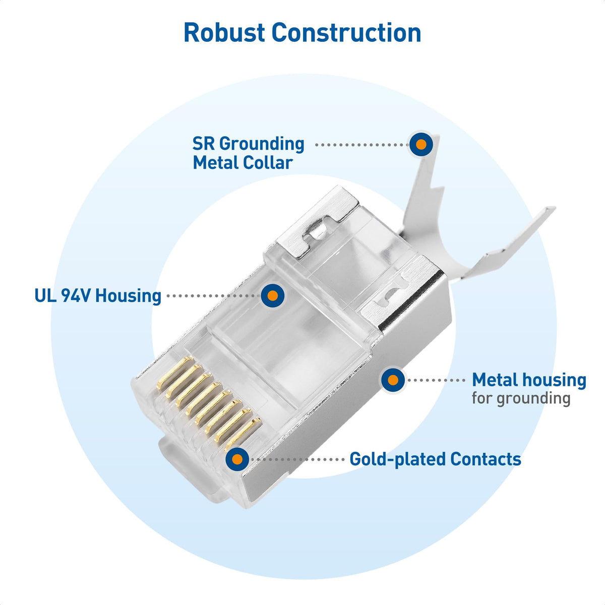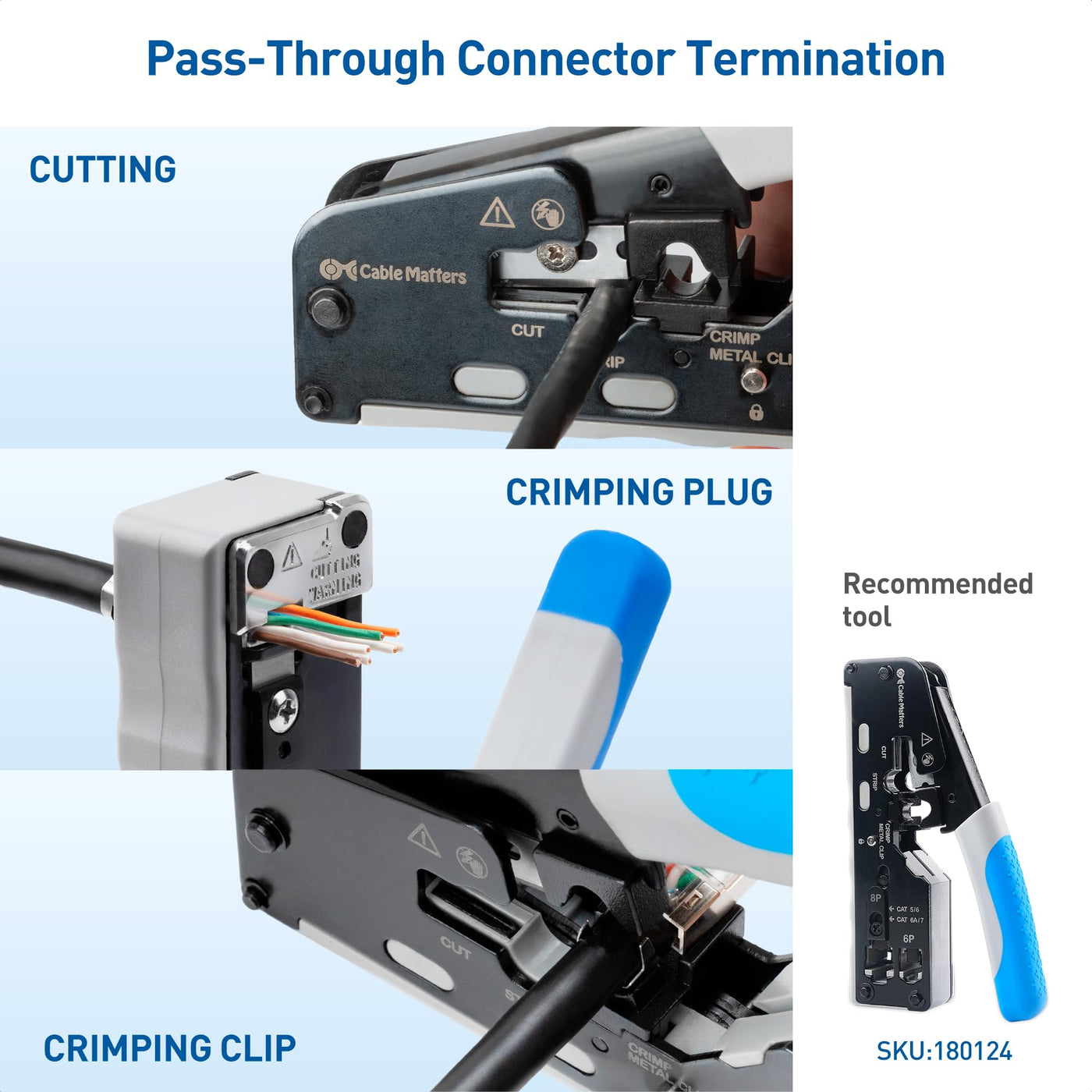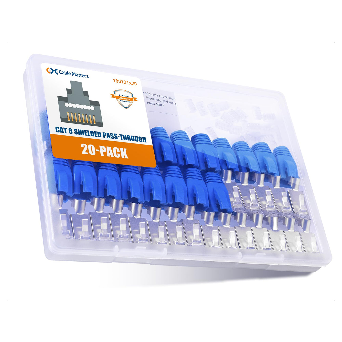 Cable Matters 20 Pack 23 24AWG Shielded Cat8 RJ45 Pass Through Connector with Load Bar & Strain Relief Boots, NOT Compatible with 22AWG Cable (Cat8 Pass Through RJ45 Plugs/Cat 8 Pass Thru Connectors)