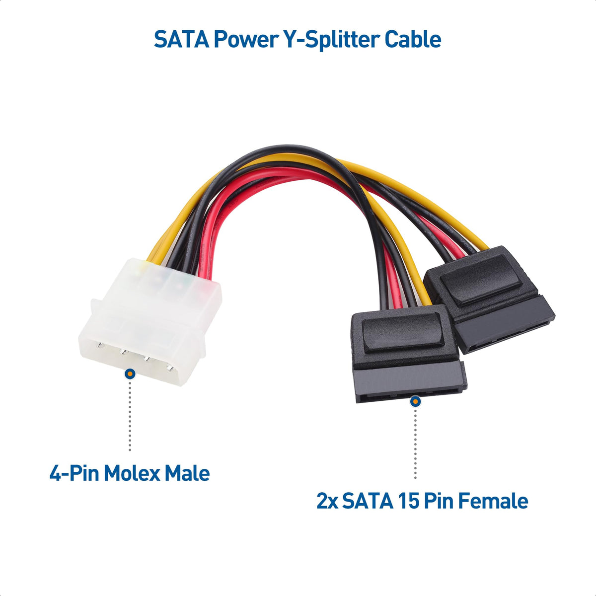 Diy Computer Essential The Cable Matters 4-Pin Molex To Dual Sata Power Y-Cable Adapter Is A Handy Addition To Your Toolbox When Building, Upgrading Or Repairing Computers. Always Have A Spare Port Ready For Connecting Sata Internal Hard Drives, Optical Drives, And Dvd Drives To Power Supplies With Legacy Lp4/4 Pin Molex Connectors. Applications Galore This Handy Cable Adapter Connects An Existing Power Supply When Upgrading A Computer With A Blu-Ray Drive Or A Faster Ssd Drive. It Installs Easily For Recycling Older Power Supplies And Motherboards For Repairs Or Replacements. Utilize The Extra Molex Ports On A Power Supply When All The Sata Ports Are Occupied. Cable Specifications - Connector 1 - Molex Lp4 4-Pin Male - Connector 2 - 2 X Sata 15-Pin Female - Length - 6 Inches - Gauge - 18 Awg - Supports 5V Sata Drives (Not 3.3V) And 12V Atx Power Supplies Package Contents 3 X Molex To Dual Sata Power Cable Adapter Warranty Limited Lifetime Warranty And Lifetime Product Support