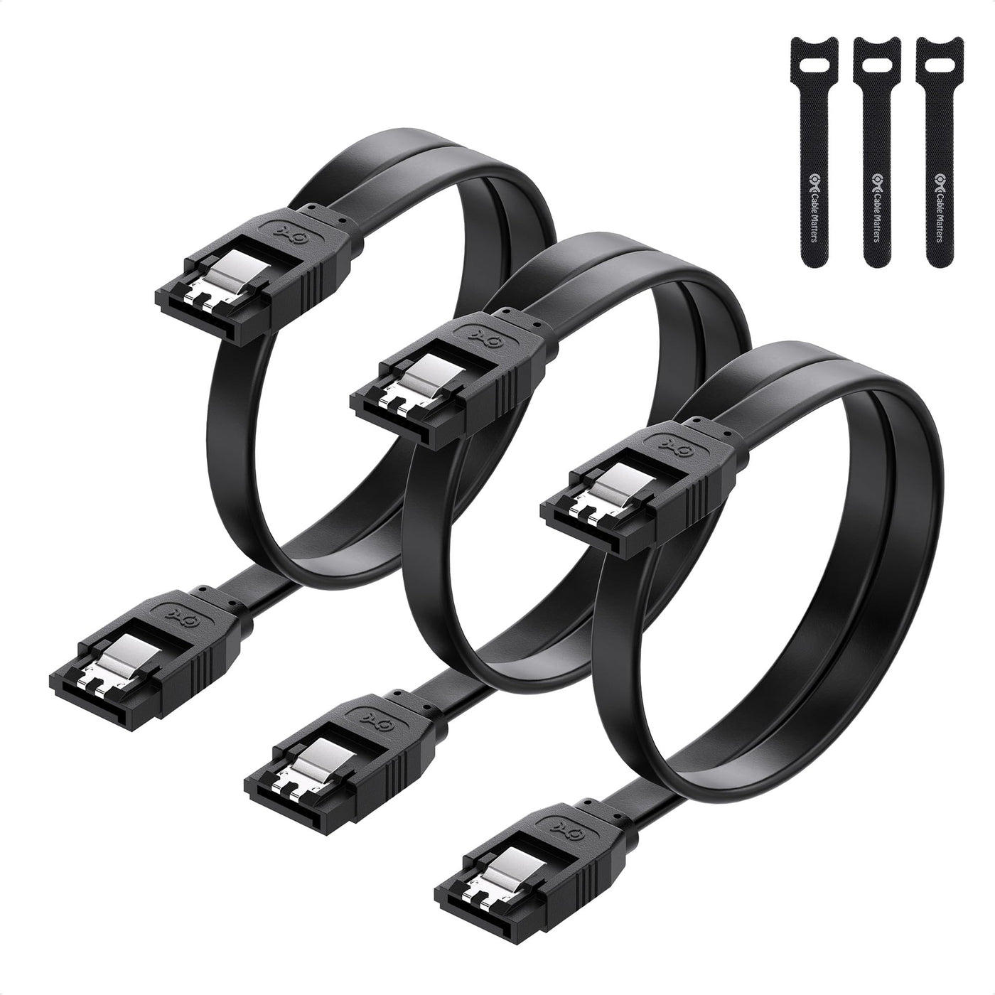Cable Matters 3 Pack 6 Gbps SATA Cables 18 Inches, SATA 3 Cable for SSD & HDD, Black