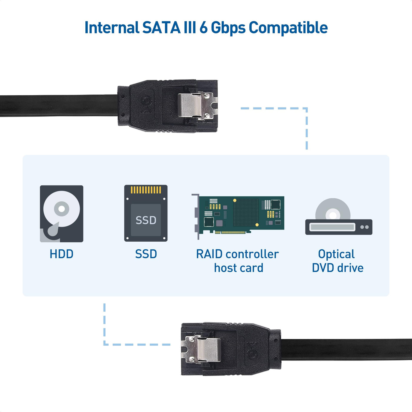 Cable Specifications - Connector 1: 7-pin SATA Plug - Connector 2: 7-pin SATA Plug - Supports SATA revision III up to 6 Gbps - Backwards compatible with SATA I, II ports