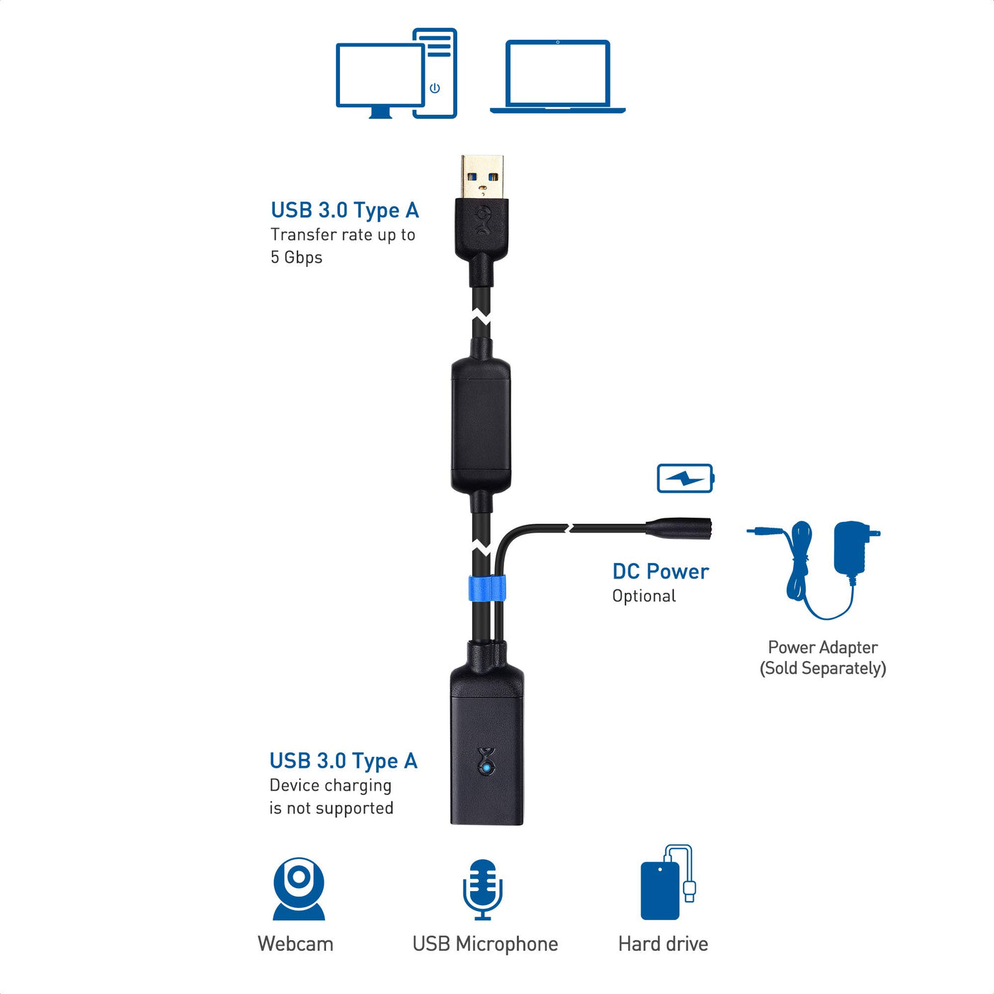 Active USB 3.0 Extension Cable The Cable Matters Active USB 3.0 Extension Cable is an indispensable accessory to bring your USB peripherals within reach. Place your USB 3.0 hub, printer or VR sensor at the ideal location across the room.