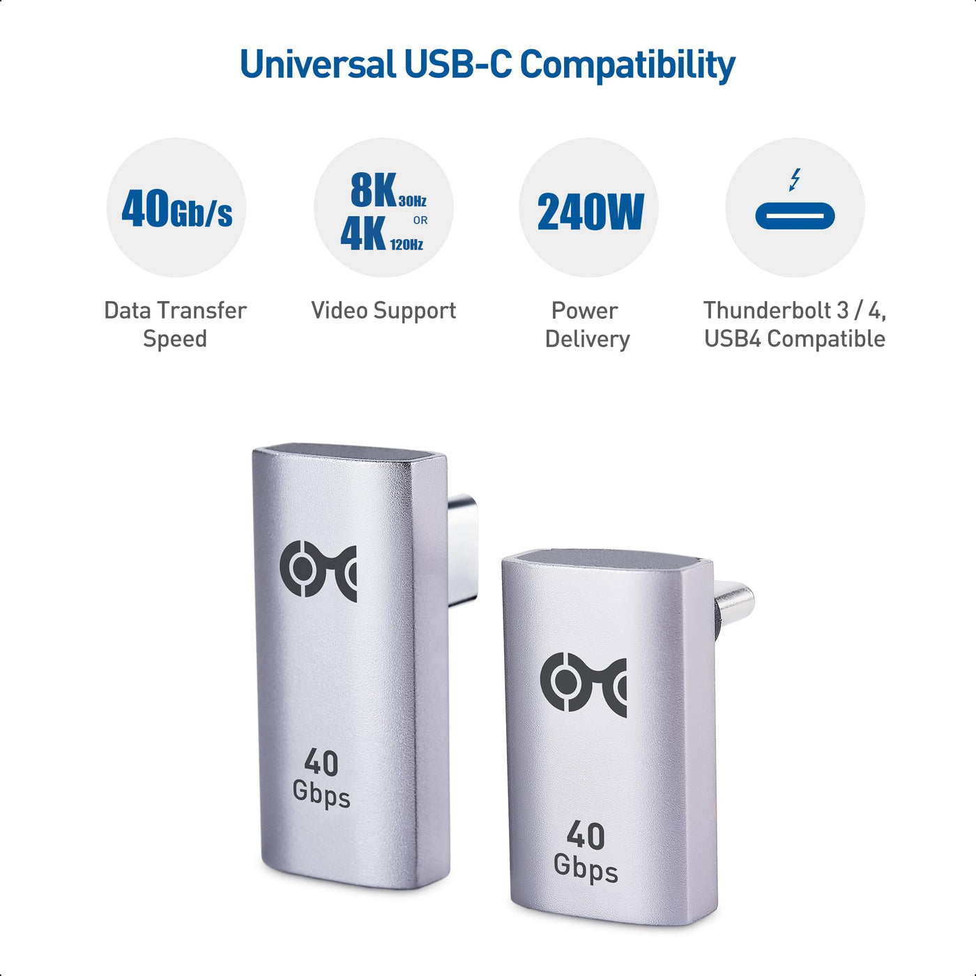Cable Matters Combo Pack 40Gbps Vertical Right Angle USB C Adapter Kit, Up to [4K@240Hz Video, 240W Charging, 40Gbps] 90 Degree USB C Adapter, Compatible with Thunderbolt 4, iPhone 16, Steam Deck
