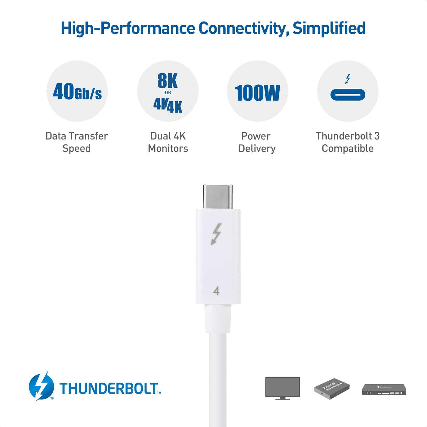 Cable Matters [Intel Certified] 40Gbps Active Thunderbolt 4 Cable 6.6 ft with 100W Charging and 8K Video in White Fully Compatible with USB C/USB C, USB 4 / USB4, and Thunderbolt 3