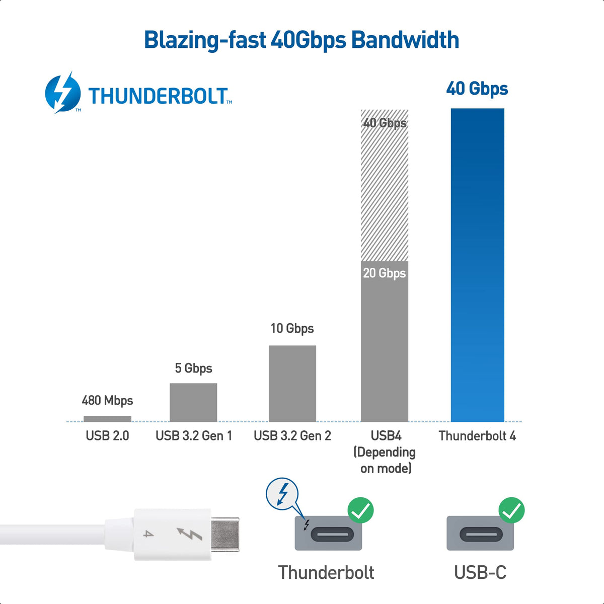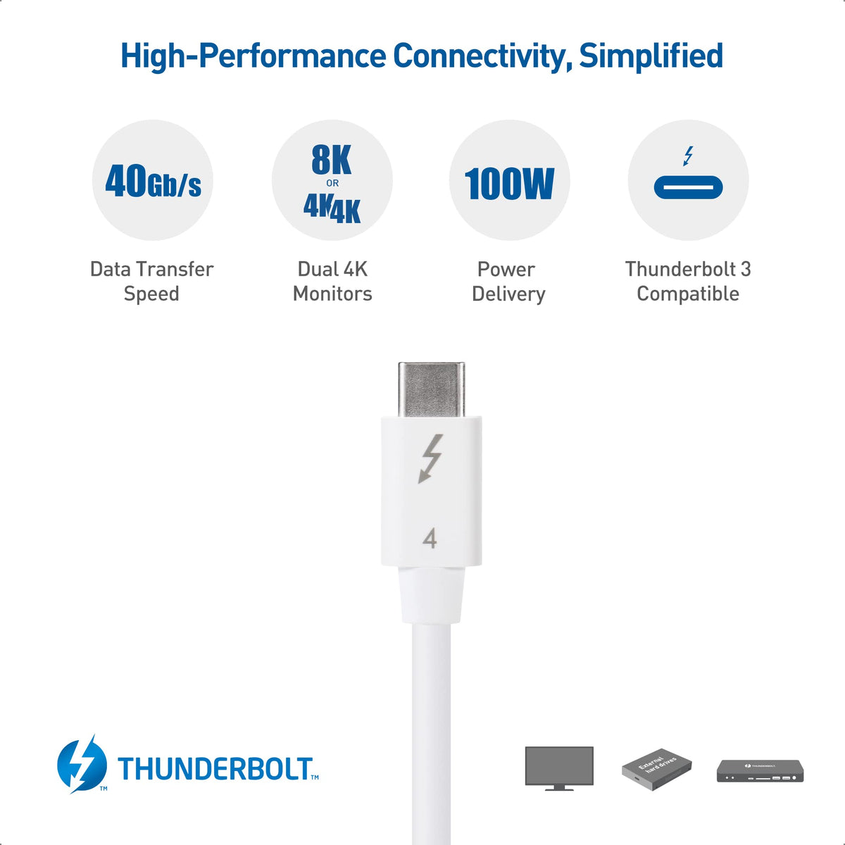 The Cable Matters Thunderbolt 4 Cable steps into the future of Thunderbolt with the most advanced and capable cable ever created. The new standard is as simple as ever: All Thunderbolt 4 devices, cables, and ports share the same reliable cutting-edge features.