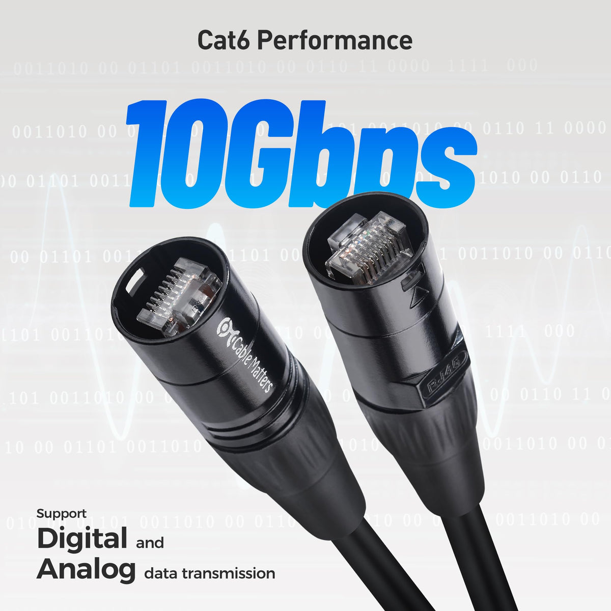 Cable Matters Long Shielded Cat6 Ethernet Cable Compatible with EtherCON RJ45 Connectors in Black 150 ft for Professional Audio, Video, and Networking Applications
