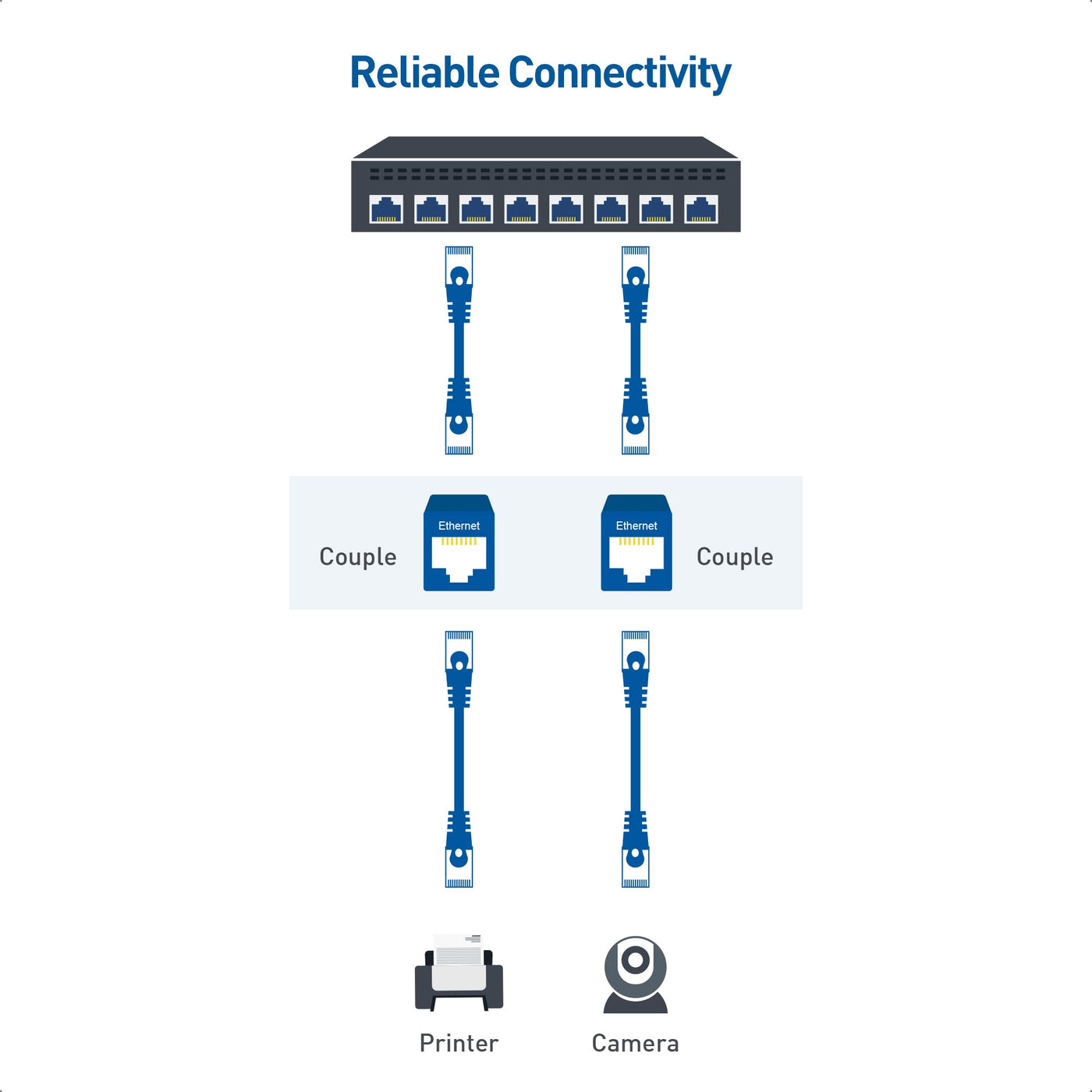 The Cable Matters Cat6 RJ45 Couplers extend the length of a Ethernet patch cable. Constructed of high-impact, fire-retardant plastic and gold-plated contacts, these keystone couplers meet or exceed Category 6 performance in compliance with the TIA/EIA 568-C.2 standard.
