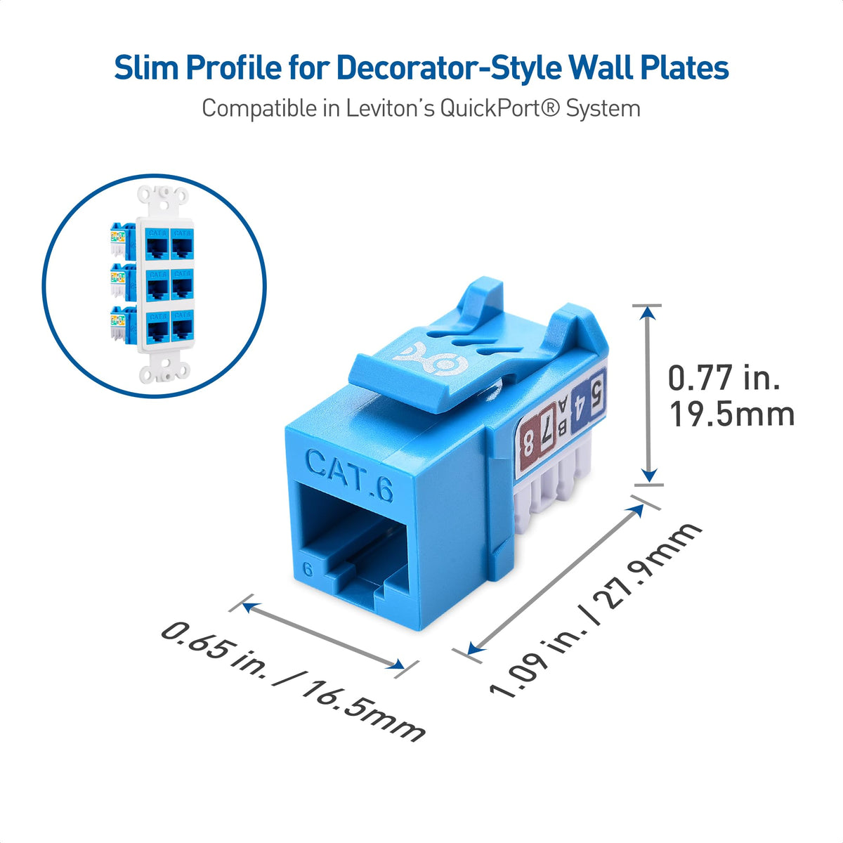 Cable Matters [UL Listed] 25 Pack 10Gbps Rapid Install Cat6 Keystone Jacks, Slim Profile Ethernet Keystone Jack, RJ45 Keystone Jack with Punch Down Stand, Blue (Model 180070)