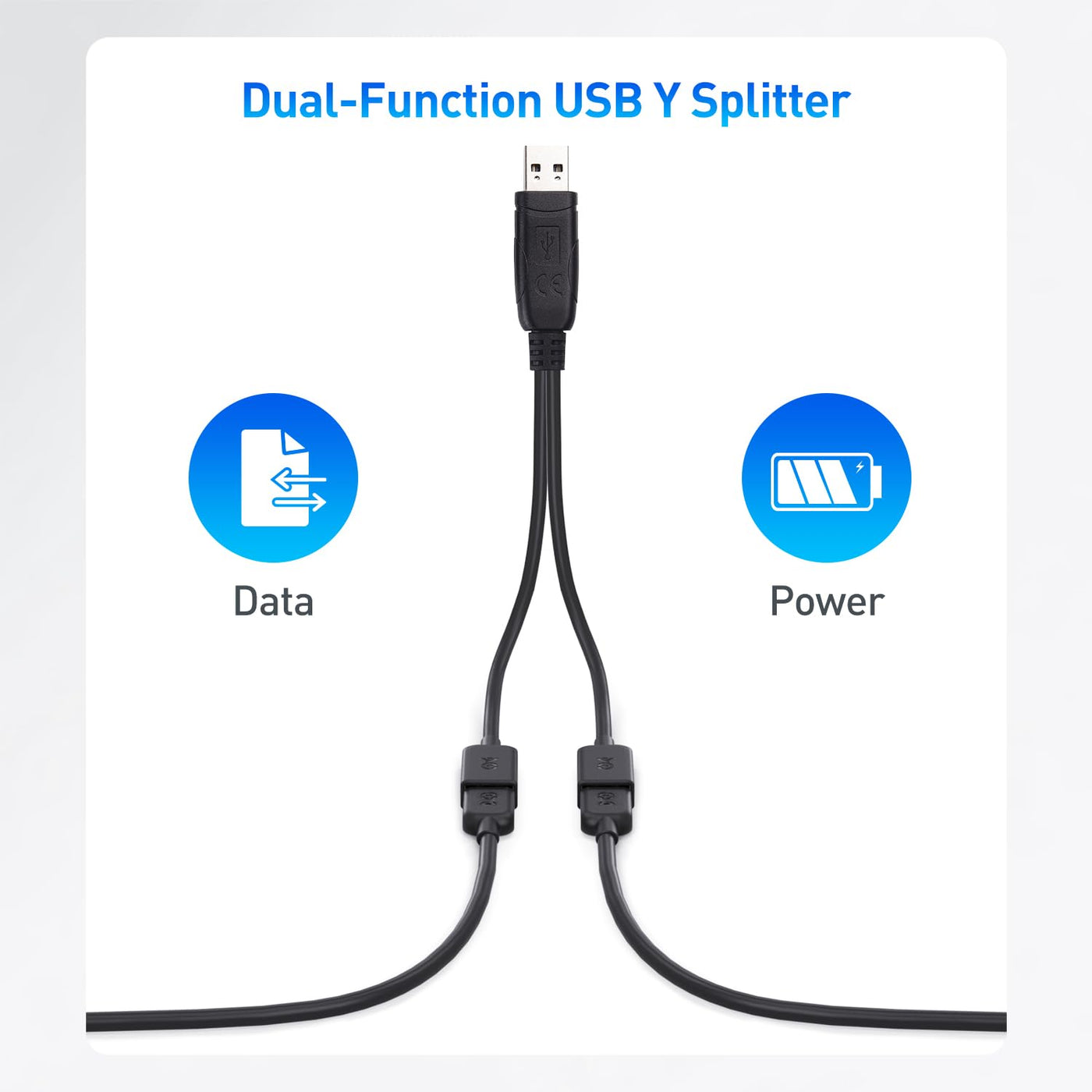 Cable Matters USB 2.0 A Male to Female USB Splitter 1 in 2 Out 1ft, USB Y Splitter Hub with 480Mbps Data Transfer, BC 1.2 Charging Support, USB Power Splitter