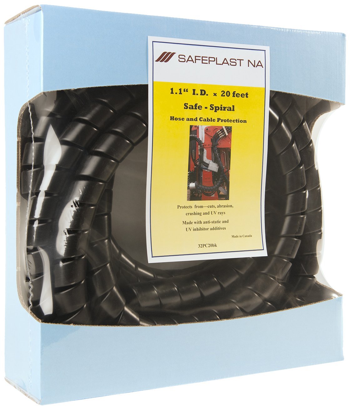 Caplugs Sppc Series Safeplast Safe Spiral Pre Cut Spiral Wrap, Hose & Cable Protector, Black Hd Pe, 1.25'' Od X Six 20' Pre Cu