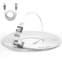 Cat 6A Ethernet Cable 100 Ft,Durable Flat Internet Network Lan Cable With 1.5Ft Short Patch Cord, Slim High Speed Gigabit Computer Wire With Rj45 Connectors, Faster Than Cat6/Cat5E/Cat5 Cable White