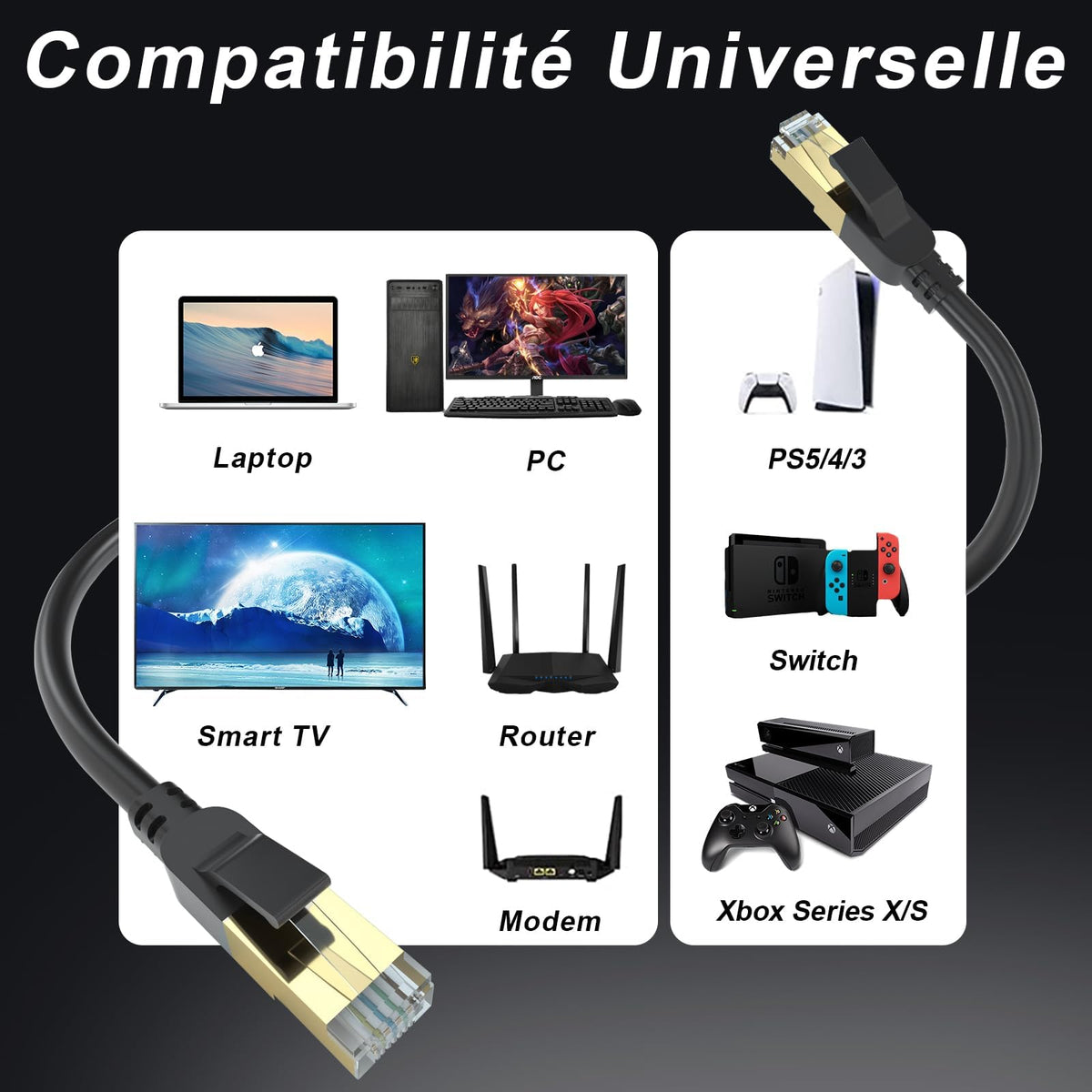 Cat 8 Ethernet Cable, 25Ft High Speed Heavy Duty 26Awg Cat8 Lan Network Cable 40Gbps, 2000Mhz With Gold Plated Rj46 Connector, O