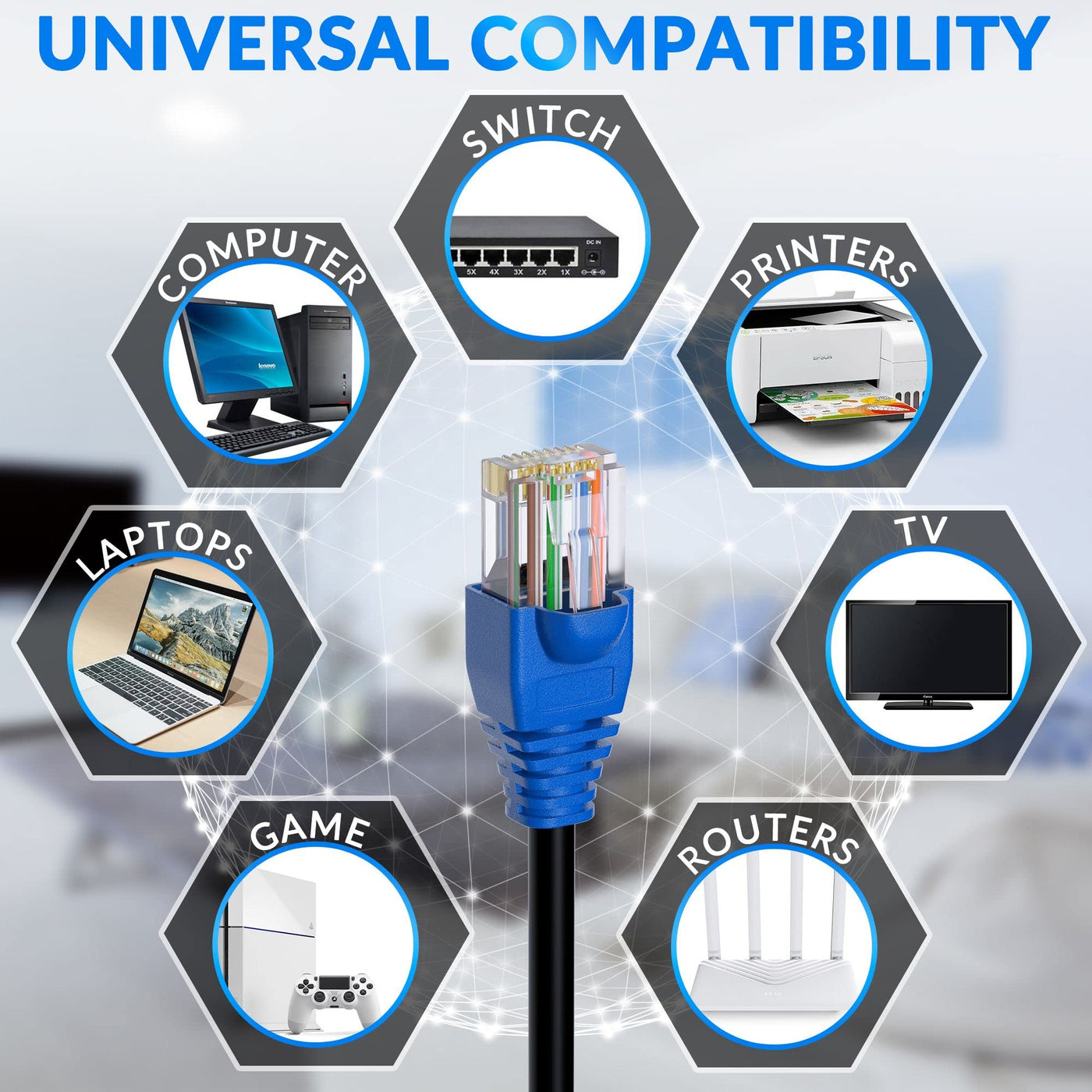 Conable Cat5E Outdoor Ethernet Cablesuitable For Outdoor, Home, Office, And Server. You Can Choose Different Lengths As Needed(25 Feet To 250 Feet).Product Featureshdpe Insulation And Cross Spline To Avoid Signal Interference. Uv Resistant Lldpe Jacket And Pvc Inner Jacket Can Be Directly Buried Underground.24 Awg Cca Conductors With Rj45 Connectors And Gold-Plated Contacts To Optimized Signal Quality.