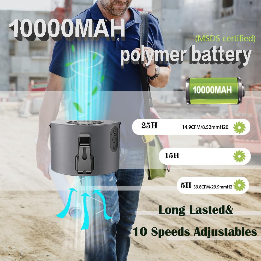 Cazokasi 2024 Newest Portable Waist Clip Fan 10000Mah Powerful Personal Wearable Fan 10 Stepless Wind 8 24Hours(Grey)