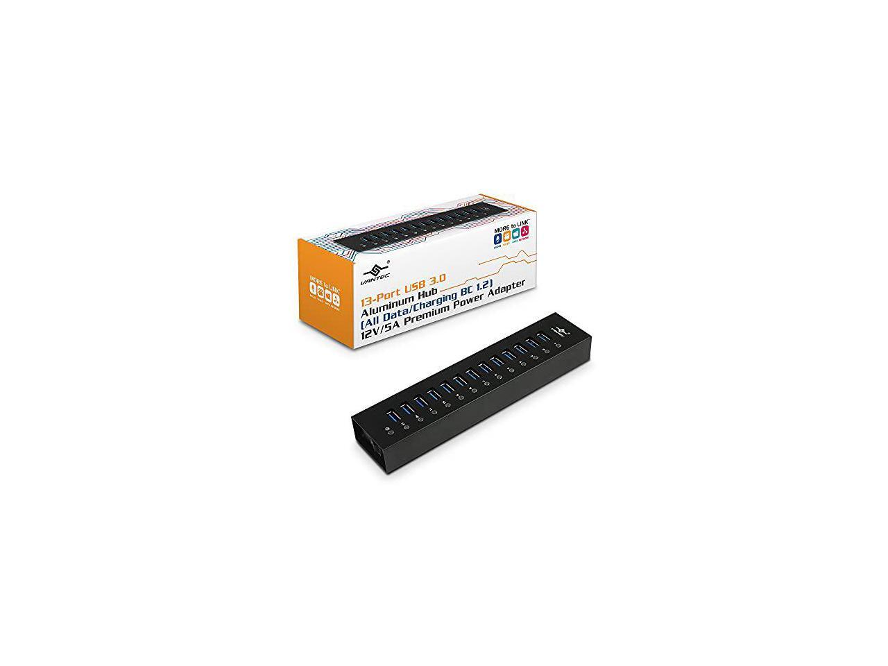 Vantec 13-Port Usb 30 Hub, Aluminum, Full Powered, Mountable, With All Ports Data & Charging Up To 15A, Bc 12, Premium 12V5A Power Adapter (Ugt-Ah131U3-Bk)