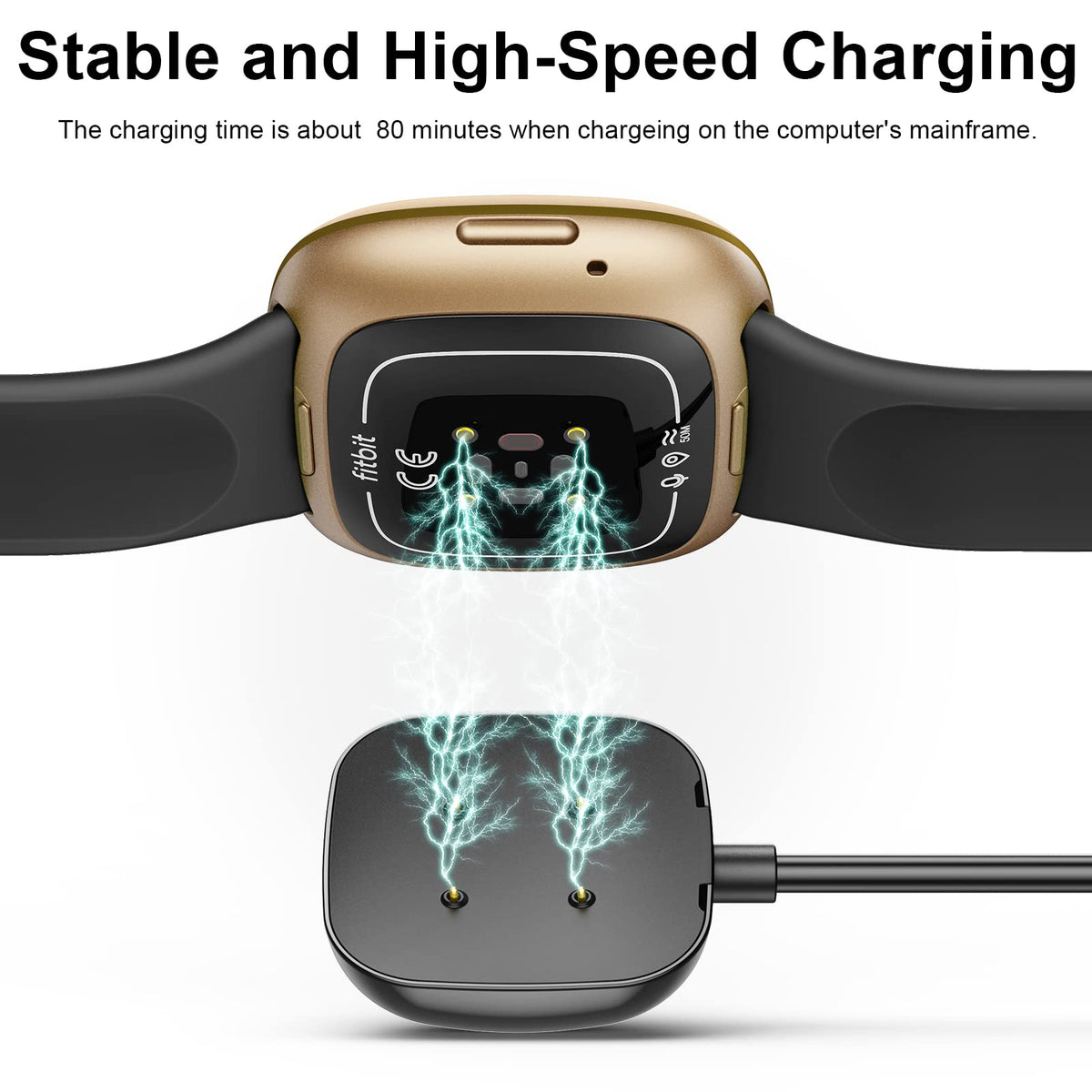 Replacement Charger Cableapplicable Smart Watch Suitable For The Fitbit Versa 3 Fitness Tracker And Fitbit Sense Fitness Tracker.Premium Materialthe Charging Cable Is Made Of High-Quality Pvc Material, Soft, Durable And Portable. Canbe Used For A Long Time.The Gold Plated Pogo Pins Is Flexible And The Charging Head Owns Nice Magnetic Power. It Can Connect The Fitness Tracker Well.The Usb Head Can Be Connected To The Substance With Usb Port, For Instance, Charging Head, Power Bank, Power Socket,Personal Computer, Laptap And So On. Fast Chargingthe Whole Charging Process Will Cost About 80 Minutes When Connecting The Charger With The Computer'S Mainframe. Safe Charging With Built-In Voltage Regulator, Provide Overcurrent, Overcharge And Overheat Protection.Compact Designthe Cable Is Lightweight, Convenient To Use And Carry For Any Indoor And Outdoor Occasions, Suitble For Home, Works And Travels.
