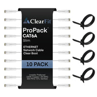 Clearfit Slim 10 Pack 5 Feet Cat6A Slim With 4 8 Inch Hook And Loop Straps, 28Awg Ethernet Patch Cable, Network Cable, Clear B