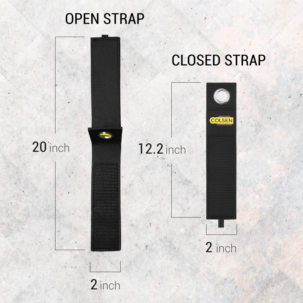 Q: What is the size of each storage strap in the pack?A: Each COLSEN Storage Strap measures 20 inches in length, and the pack contains 6 straps, providing ample options for organizing multiple items.