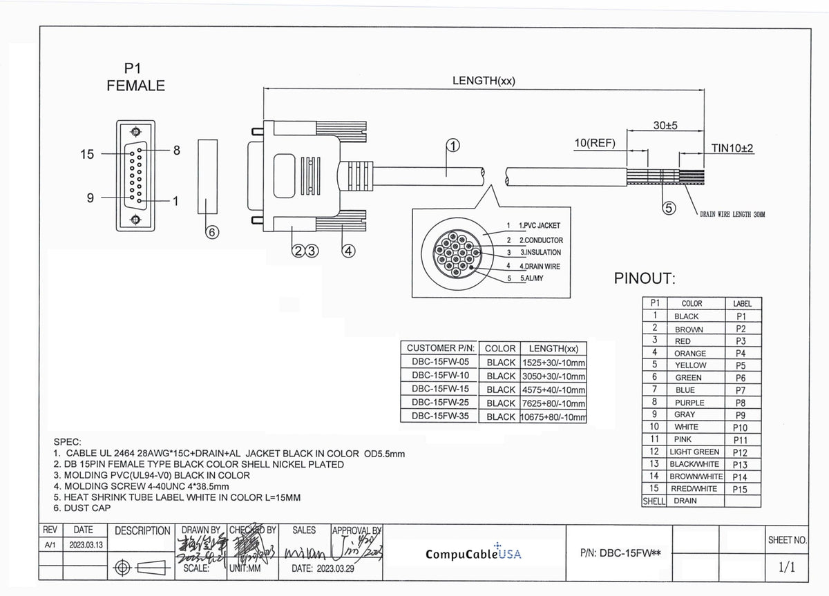 Db15 Serial Female 15 Pin Data Transfer Cable With Wire Ends; Straight Connectors-Wire Leads Connection Attached With Cable. | Tin-Coated Bare Wires End Labeled With Color And Pin Numbers For Convenience Of Assembly Or Soldering. | 10 Feet Industrial Grade Rs232 Adapter Cable With Bare Wire Ends. Connect Legacy Db15 Serial Communications Devices To Board. | Rs-232 Level Uart Data Signals; Industry Standard To Ensure Maximum Compatibility And Superior Reliability For Industrial Application.