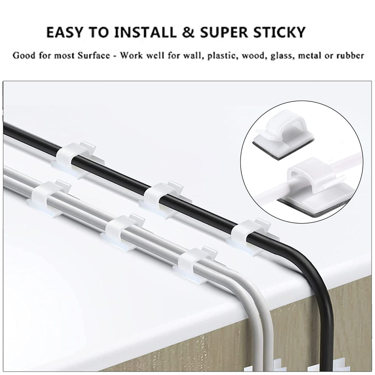 Cord Management Organizer Kit 2 Cable Sleeve Split With 41Self Adhesive Cable Clips Holder, 10Pcs And 2 Roll Self Adhesive Tie A