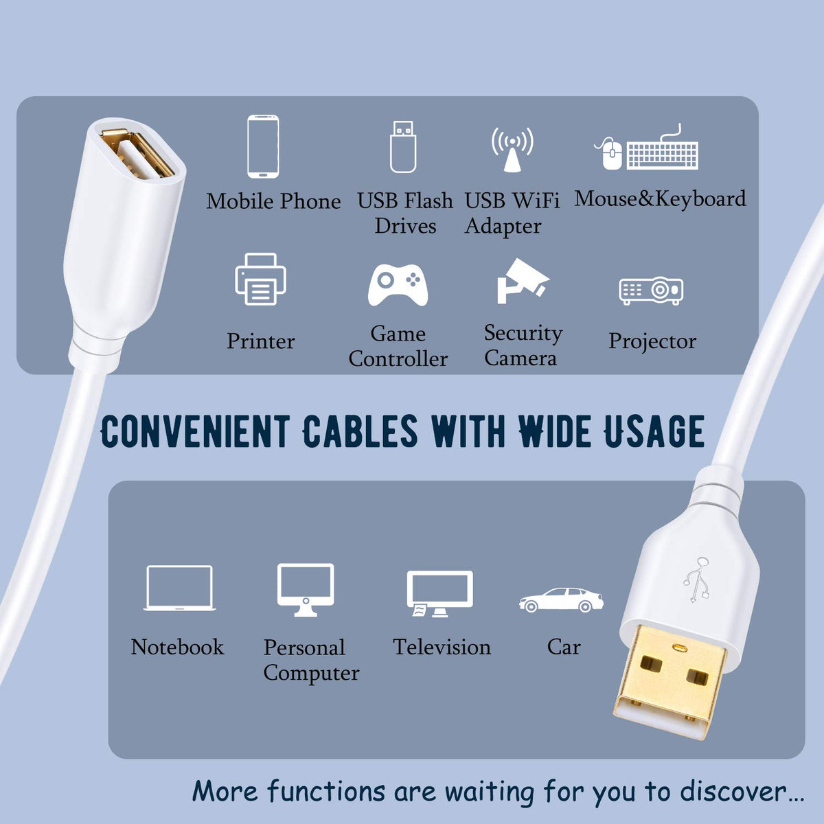 Q: What data transfer speed can I expect from this USB Extension Cable?A: This cable supports USB 2.0 technology, offering a data transfer speed of up to 480 Mbps, which ensures efficient data transmission for your devices.