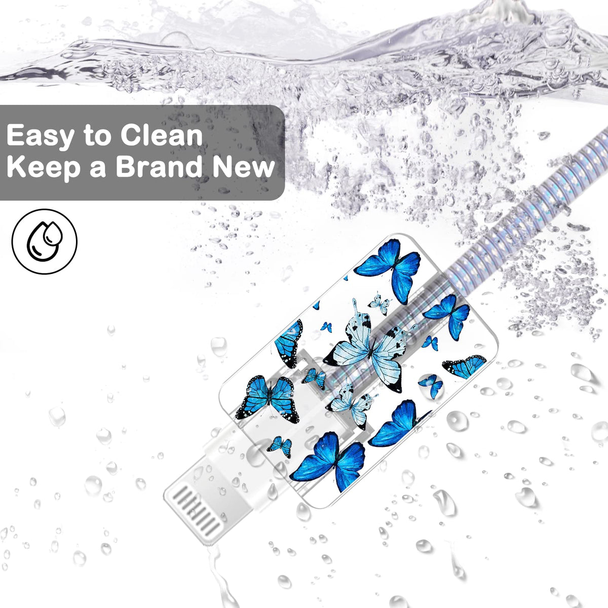 Cute Protectors Cable Protector For Iphone Charger Case Cover Pretty Elegant Blue Butterflies Pattern Unique Design Data Cable P