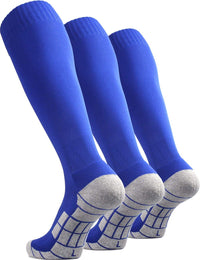 Cwvlc Boys Soccer Socks Youth 3 Pairs Football Sport Team Athletic Knee High Long Tube Cotton Compression Socks Blue Small (3Y 5
