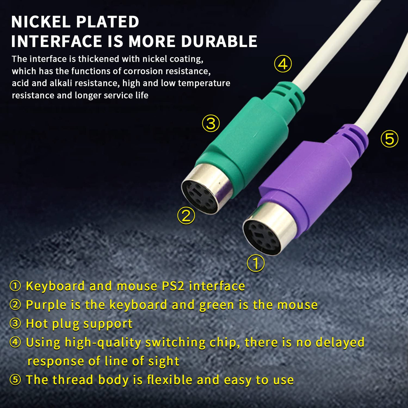 Connector 2: Ps2 Female, Purple For Keyboard And Green For Mouse.