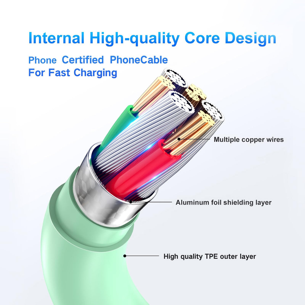 Q: Is the included charging cable durable?A: Yes, the included 10ft USB C to Lightning cables are made from premium TPE material, designed to be abrasion-resistant and tangle-free. This ensures long-lasting durability for everyday use, whether at home, in the office, or on the go.