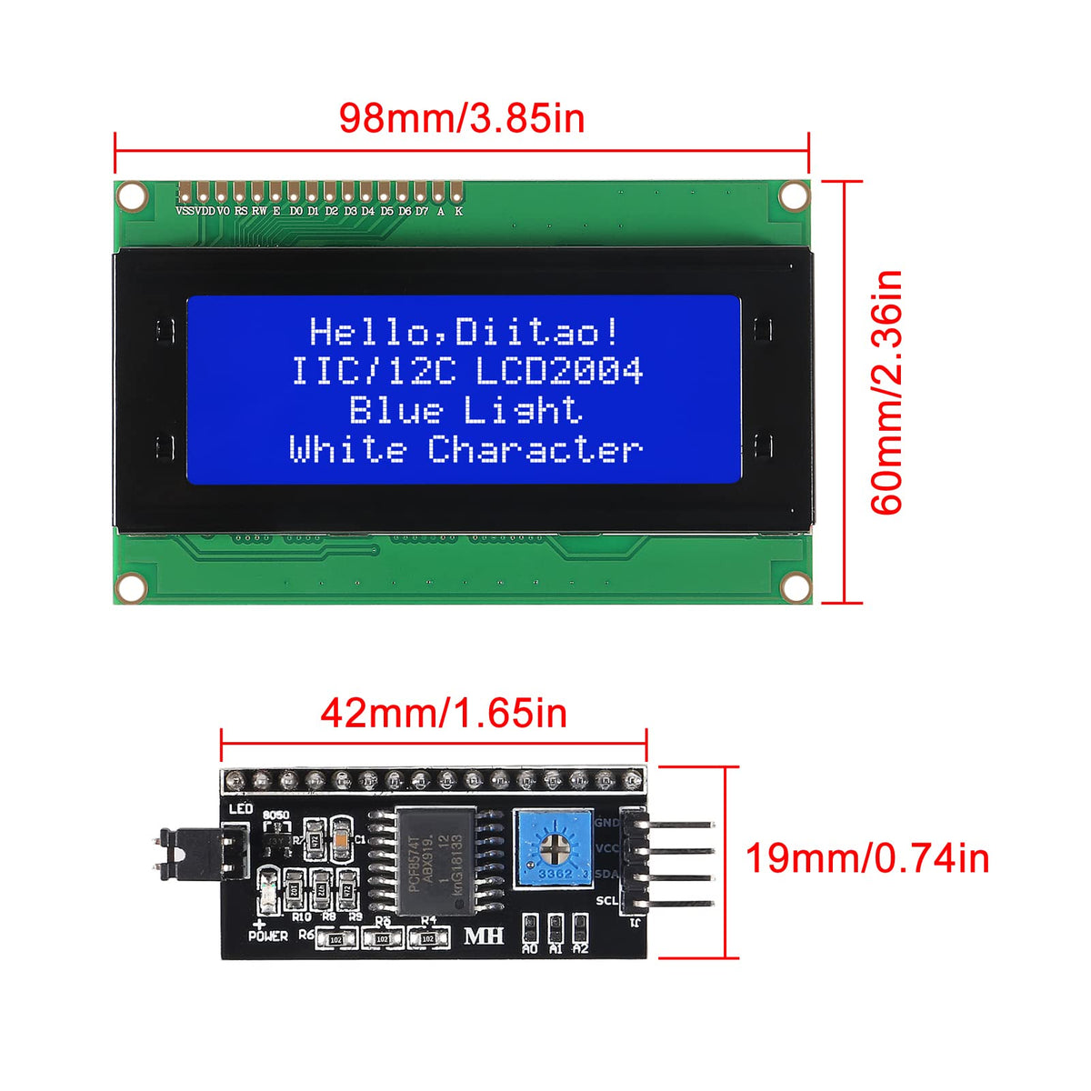 Q: Is the Diitao 2004 LCD module compatible with Arduino?A: Yes, the Diitao 2004 LCD module is fully compatible with Arduino and other microcontroller platforms that support I2C communication. It only requires two I/O ports for operation, making it an excellent choice for various projects.