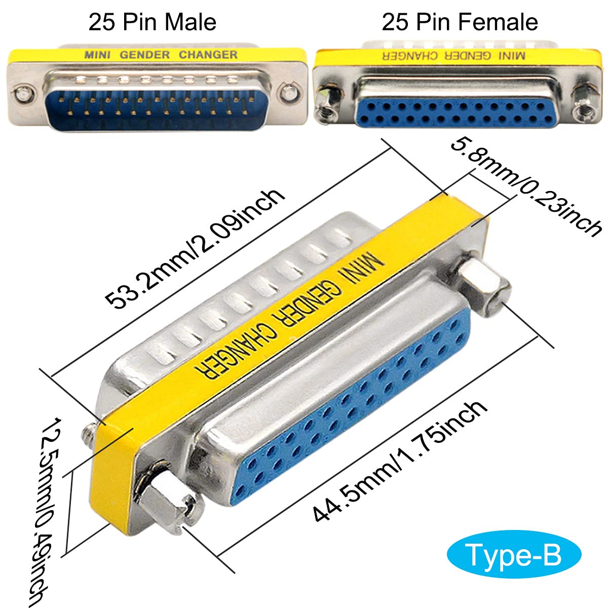 The Db25 Gender Converter Can Convert The Db25 Cable Into Male Or Female, Or Connect Two Cables. Specification: Connector A: Male-Female Connector B: Male-Male Connector C: Female-Female Package Includes: 2 X Db25 Male To Male Converter 2 X Db25 Male To Female Converter 2 X Db25 Female To Female Converter
