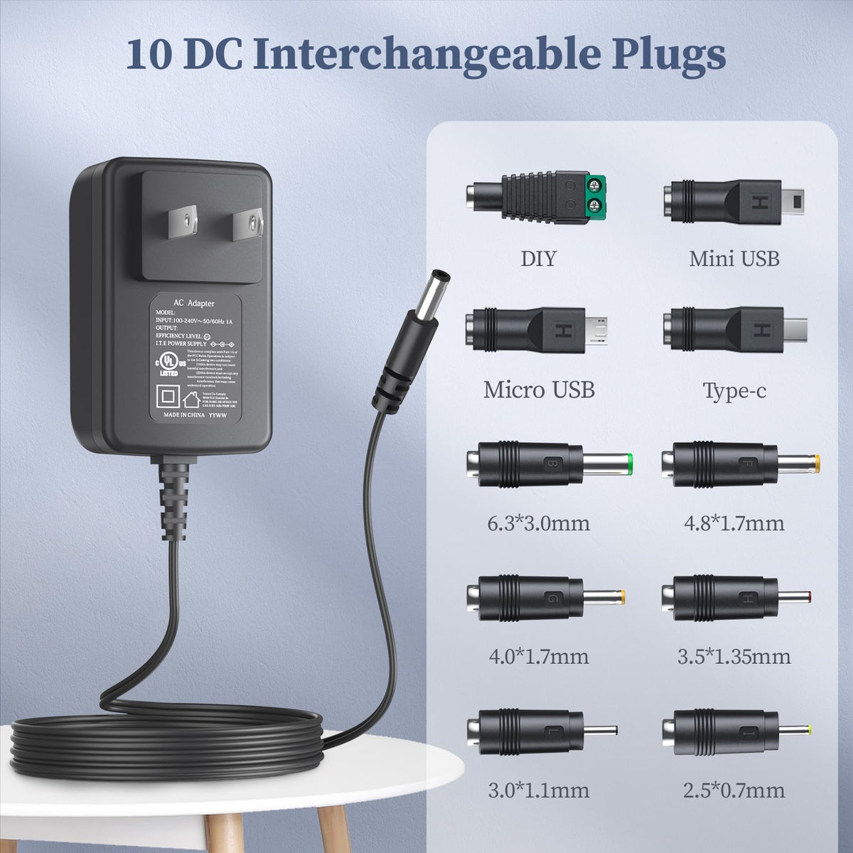 Donyoie 5V 1A Power Supply 5 Volt Charger 1000Ma 5W Max Regulated Switching Ac To Dc Cord Adapter With 10 Replacement Connector