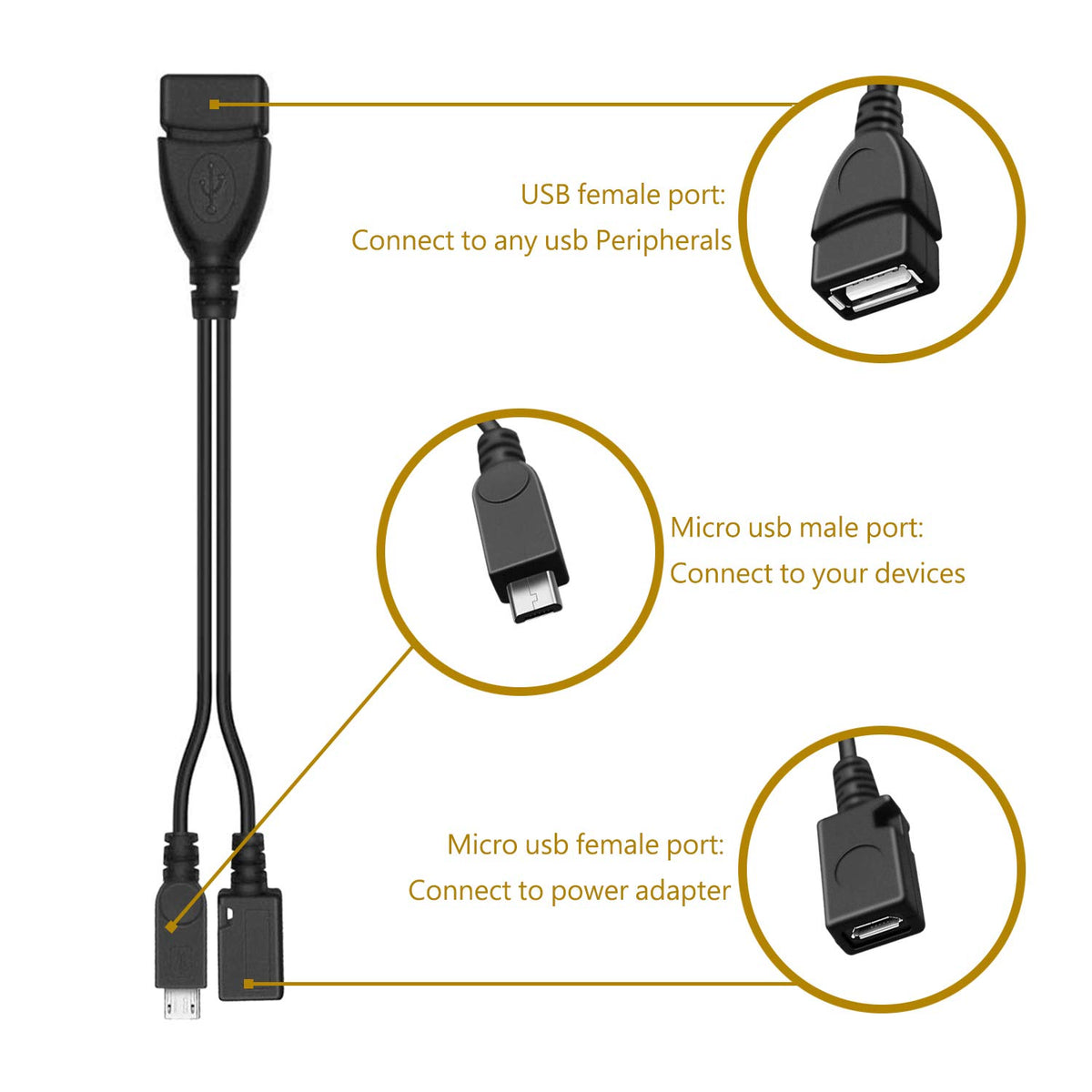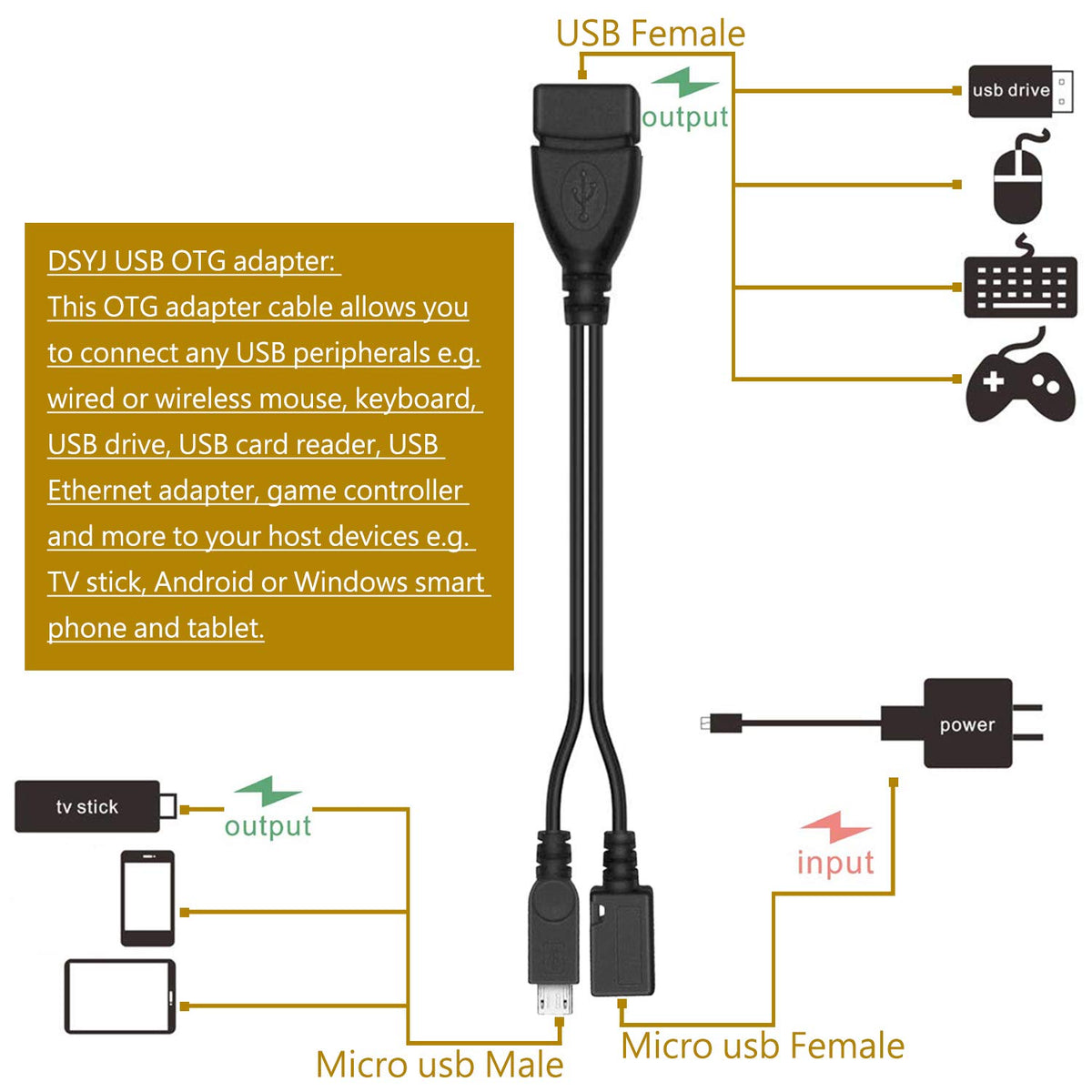 Dsyj Micro Usb Host Otg Cable With Micro Usb Power For Samsung S7 Edge, S6 Edge, S5, S4 & Nexus 10 9 7 4 Player + All Others 2 Pack