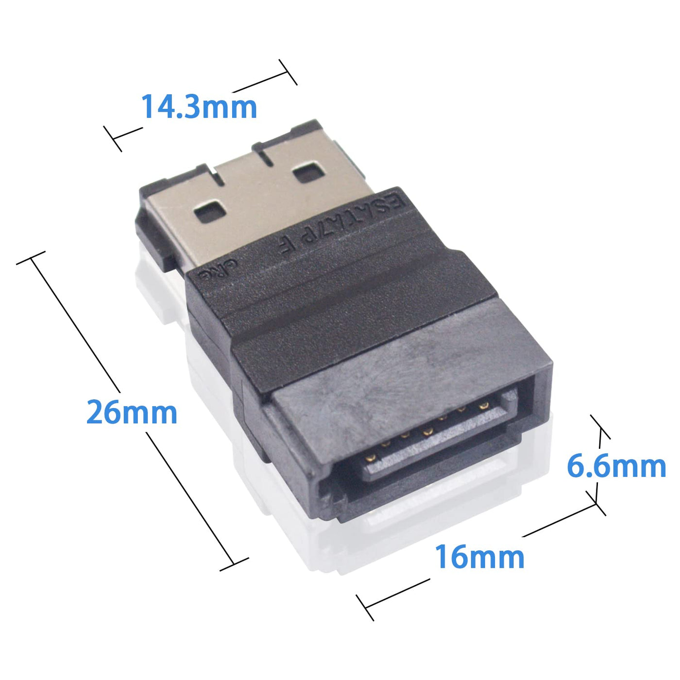 Duttek Sata To Esata Adapter, Female Esata To Sata, Esata 7Pin Female To Sata 7Pin Male Extende Adapter. (2Pack)Features:1. Esata To Sata Power Adapter.2.Esata Cable To Sata Small And Light, Easy To Carry. 3. Compared With Esata Cables, Sata To Esata Adapter Will Not Be Affected By The Length Of The Cable.4. Sata Female To Sata Femaler Length: 16.10Mm, Height: 26.05, Width: 6.39Mm.Esata To Sata Adapter Is Faster Than Usb3.0 And Usb2.0 Adapters, With A Transmission Speed Of Up To 6 Gbps. Esata Adapter'S Tb Hard Drive Can Directly Support File Backup Without The Need For A Network. Backward Compatible With Sata I, Ii, Iii Hard Drives.Note: Unplug The Power Supply Before Configuring The Device.